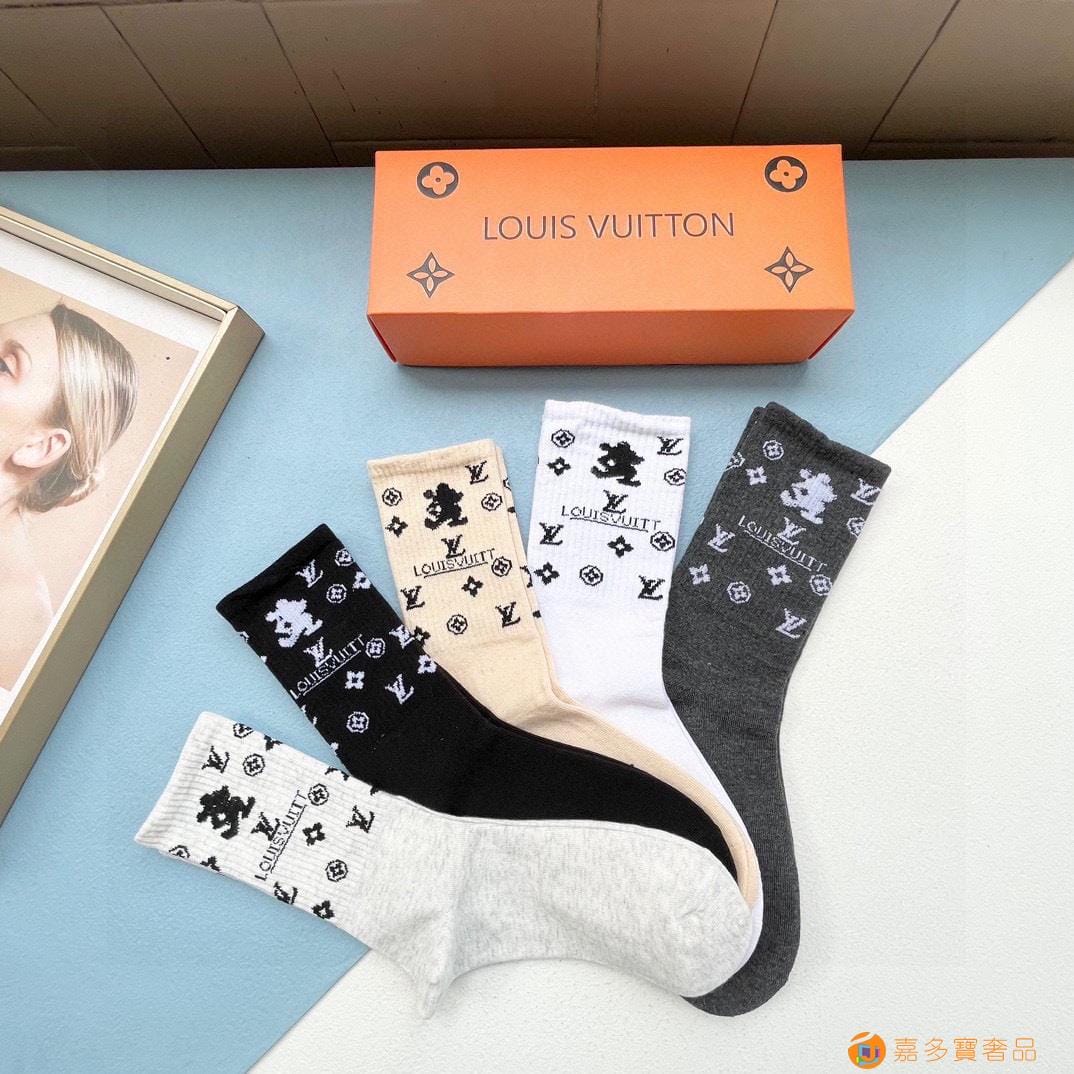 配包装【一盒五双】LV · 路易威登??L家新品烫金中筒女款