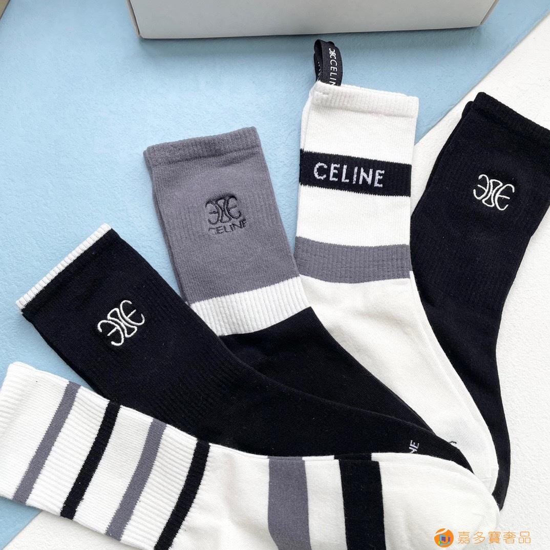 配包装【一盒五双】CELINE · 赛琳??高品质?超级爆款网红袜子??ce家官网同步刺绣字母中筒袜,ins明星网红推荐??火爆至极?纯棉材质,轻薄柔软透气,四季通用,欧美大牌街头必备?