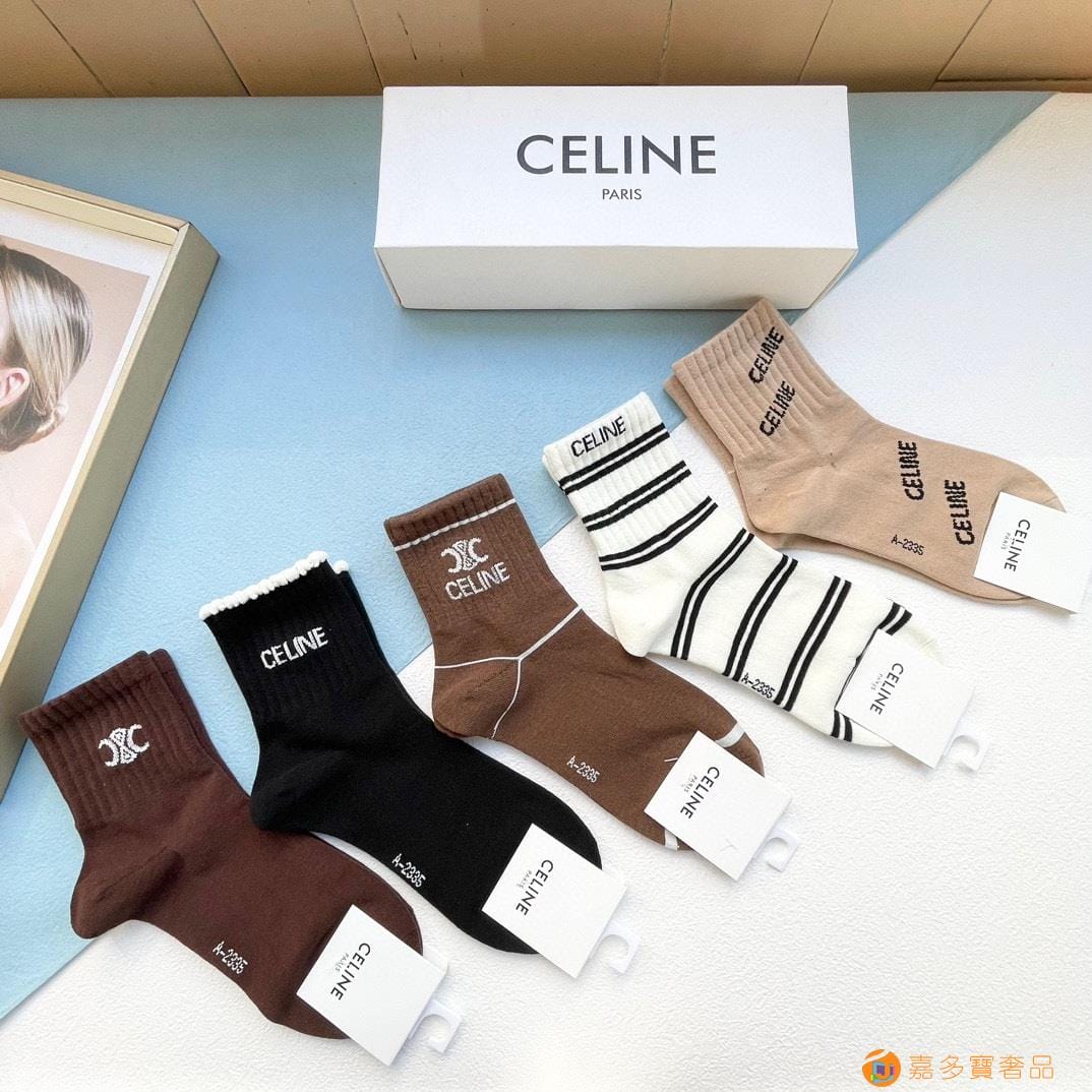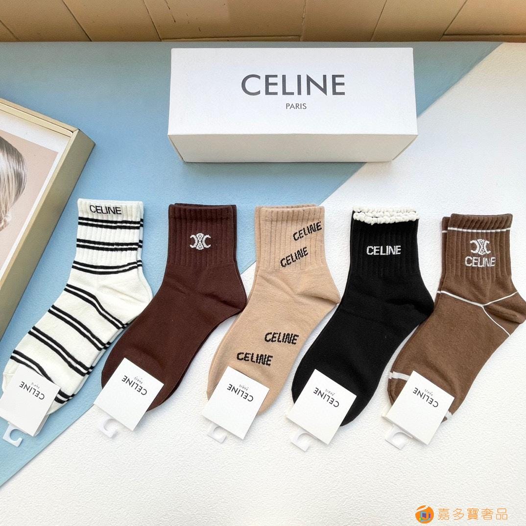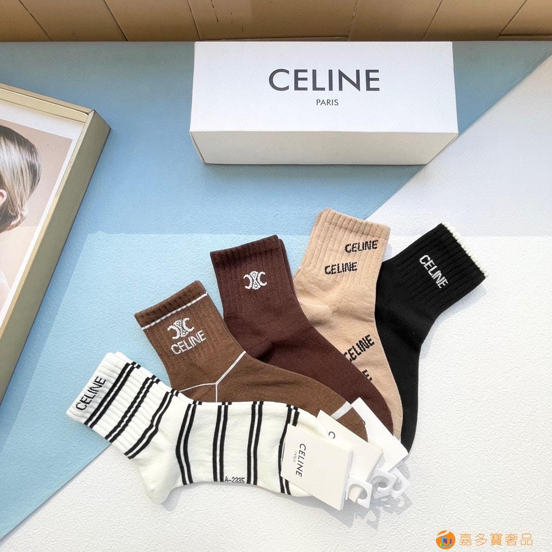 配包装【一盒五双】?Celine赛琳 爆款中筒袜?高版本