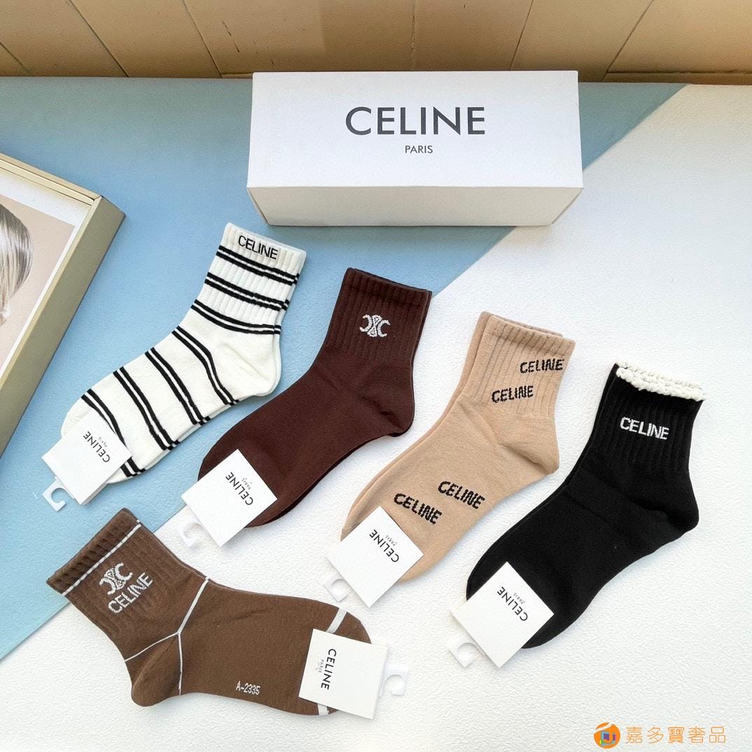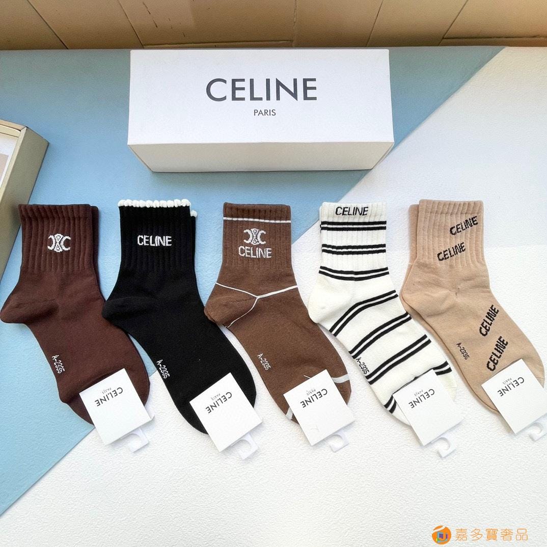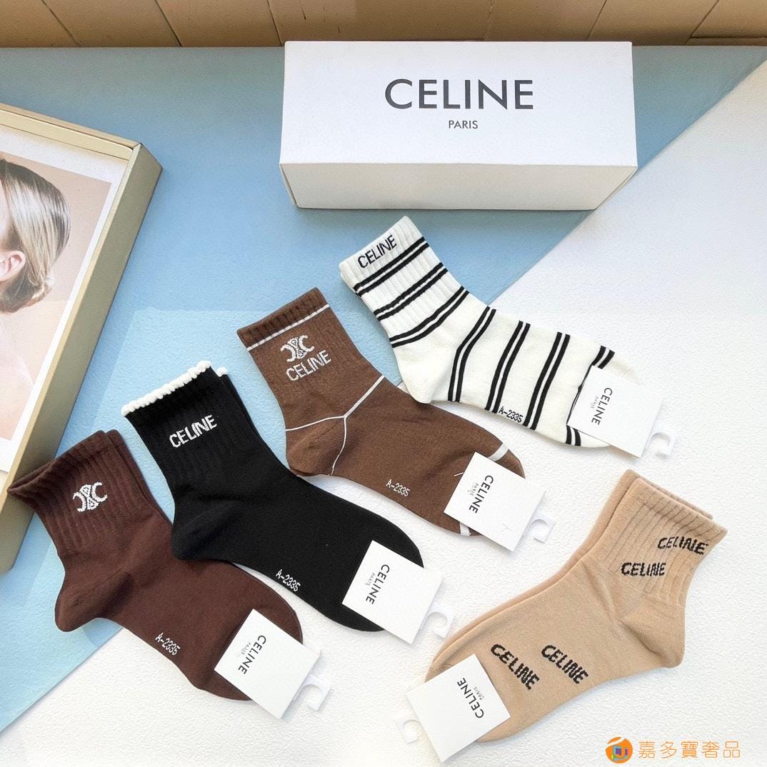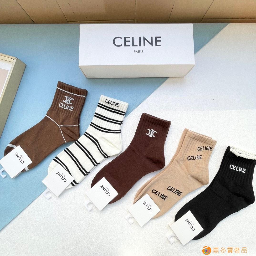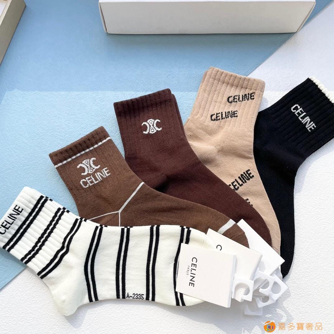 配包装【一盒五双】?Celine赛琳 爆款中筒袜?高版本 ~好看到爆炸 欧美大牌中筒袜??潮人必不能少的专柜代购品质 袜子 ,搭配起来超高逼格 时髦度爆表啊啊啊啊~~推荐推荐推荐~~必入时髦小单品!!