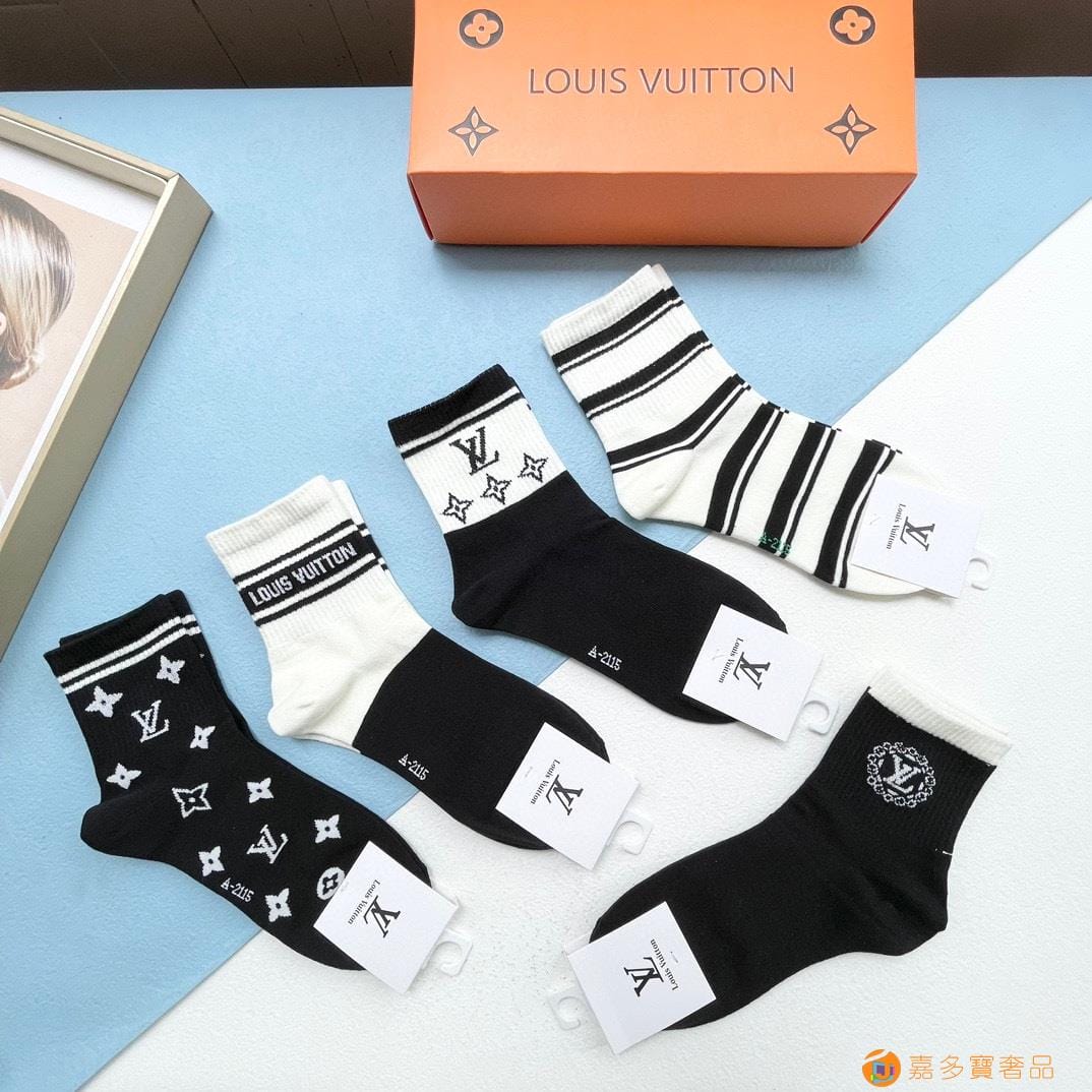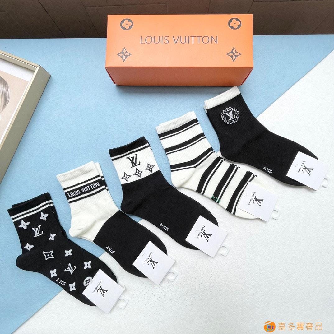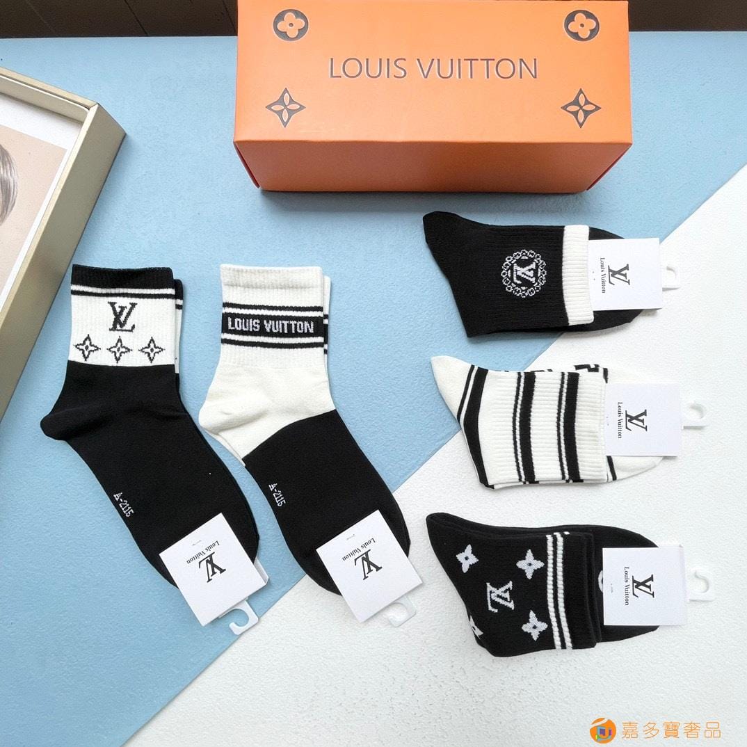配包装【一盒五双】?LV 路易威登 爆款 中筒袜?高版本 ~好看到爆炸 欧美大牌中筒袜??潮人必不能少的专柜代购品质 袜子 ,搭配起来超高逼格 时髦度爆表啊啊啊啊~~推荐推荐推荐~~必入时髦小单品!!