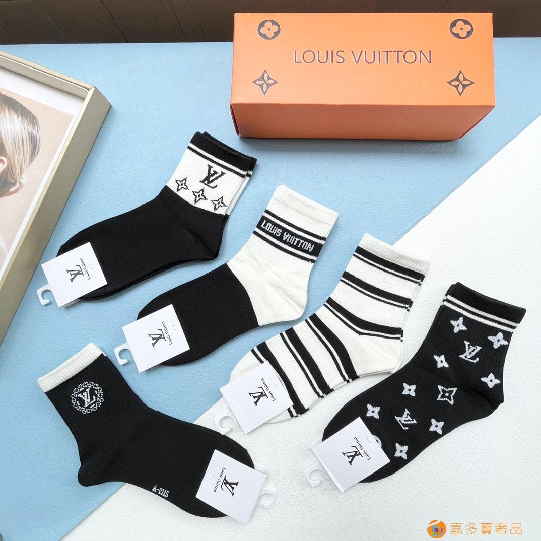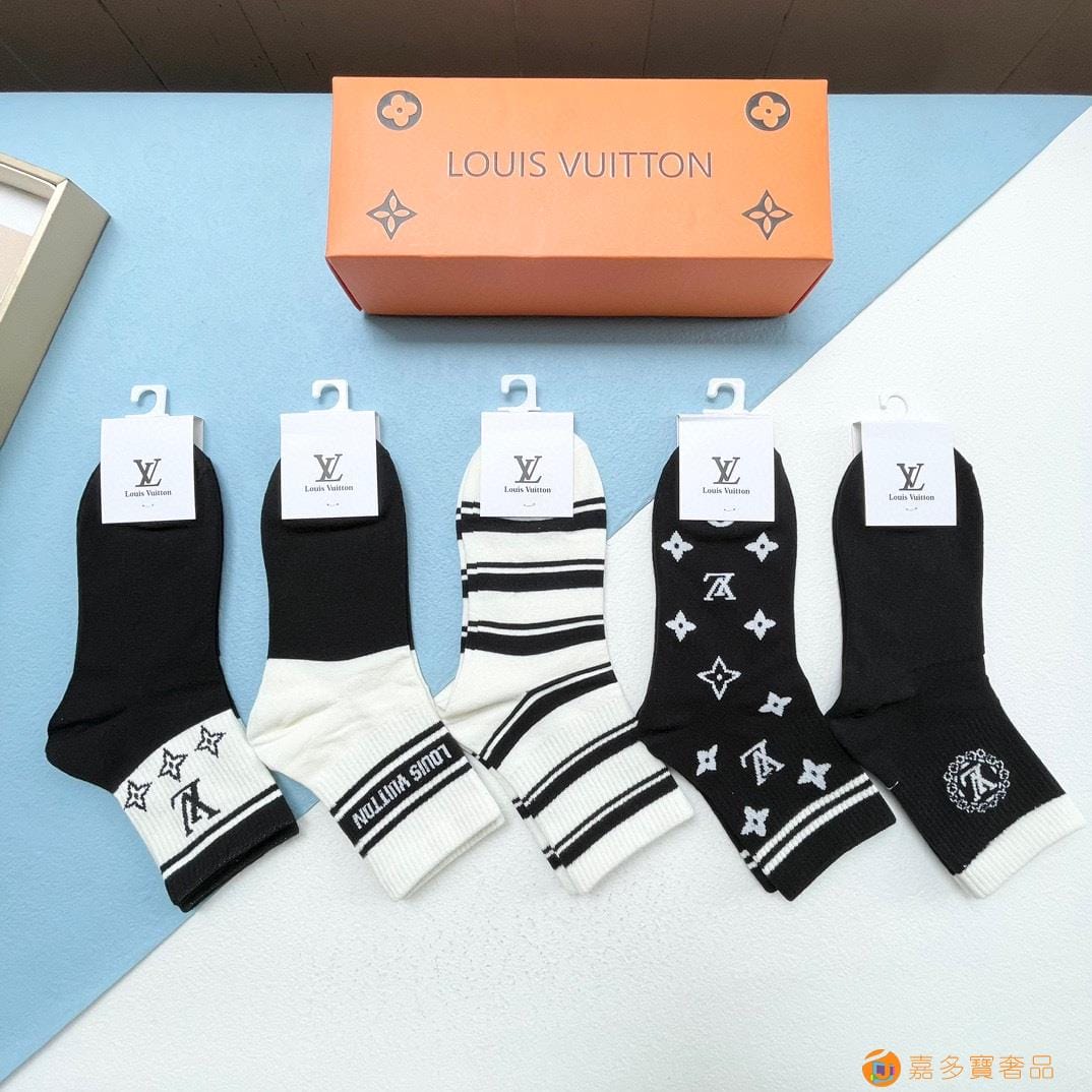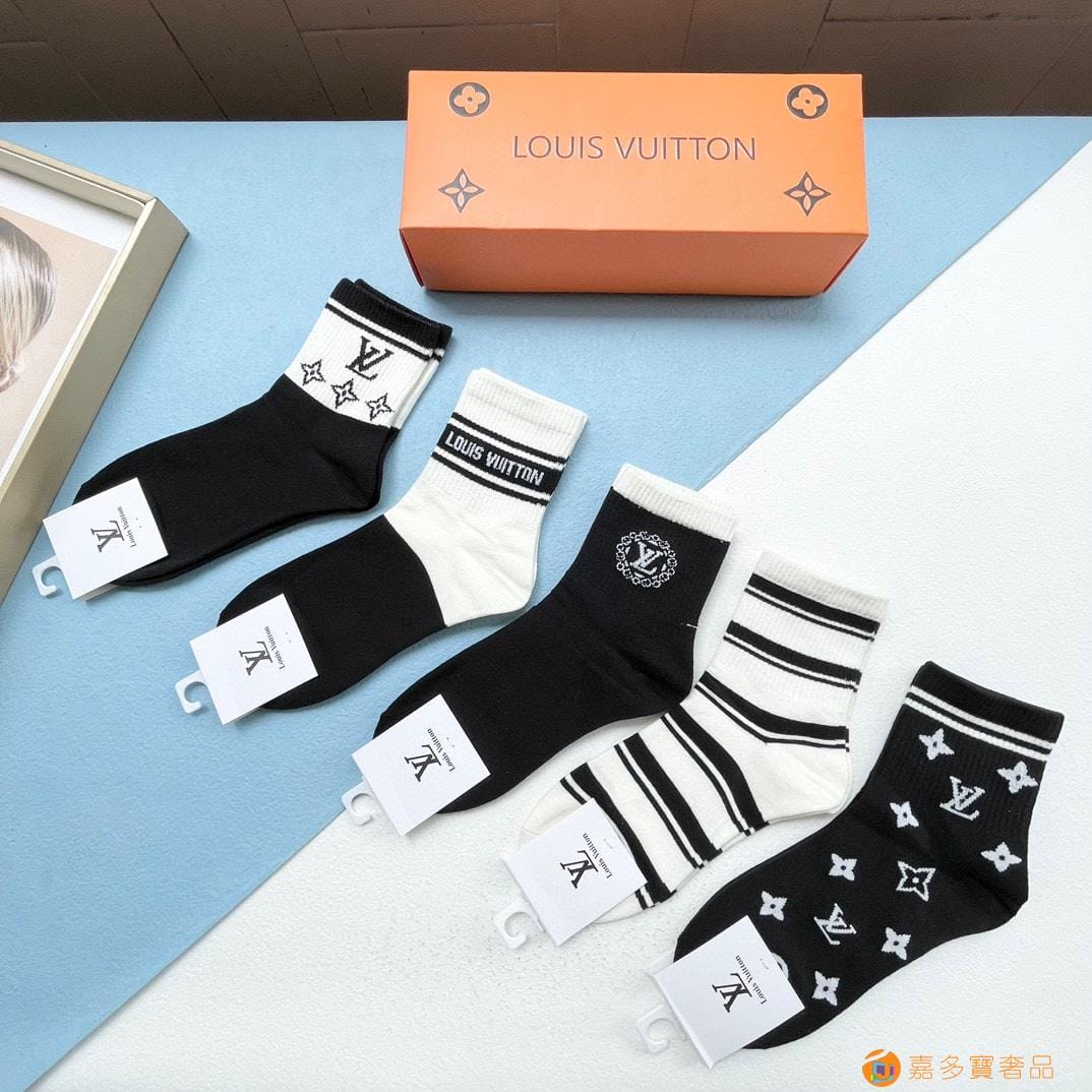 配包装【一盒五双】?LV 路易威登 爆款 中筒袜?高版本 ~好看到爆炸 欧美大牌中筒袜??潮人必不能少的专柜代购品质 袜子 ,搭配起来超高逼格 时髦度爆表啊啊啊啊~~推荐推荐推荐~~必入时髦小单品!!