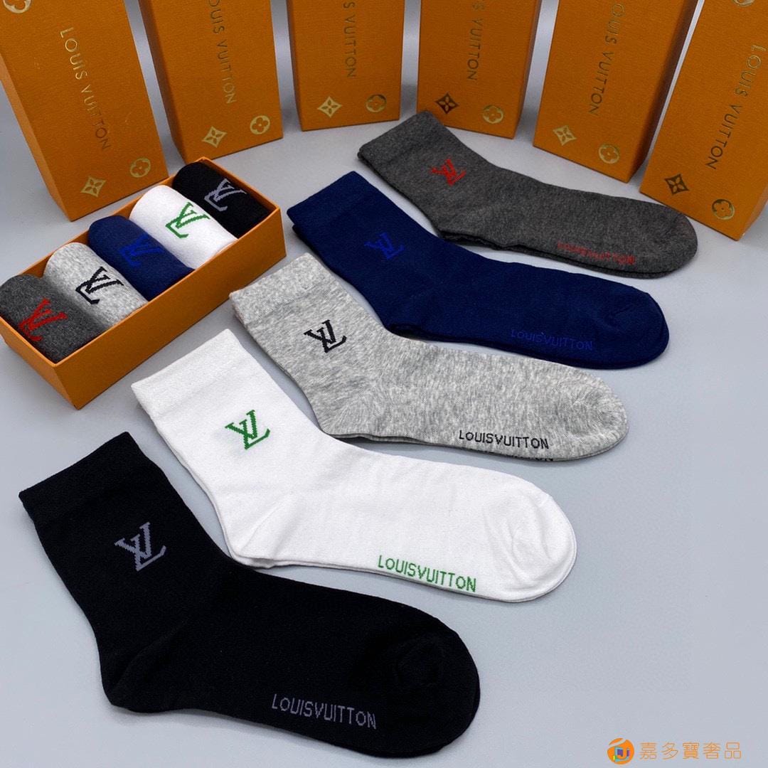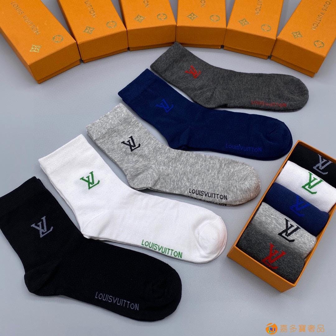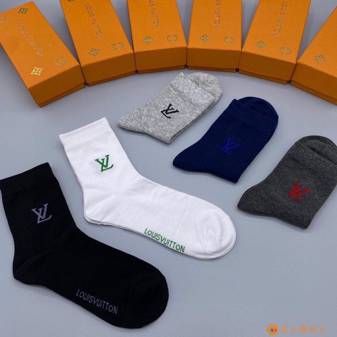 配包装【一盒五双】?LV 路易威登 爆款 中筒袜?高版本 ~好看到爆炸 欧美大牌中筒袜??潮人必不能少的专柜代购品质 袜子 ,搭配起来超高逼格 时髦度爆表啊啊啊啊~~推荐推荐推荐~~必入时髦小单品!!