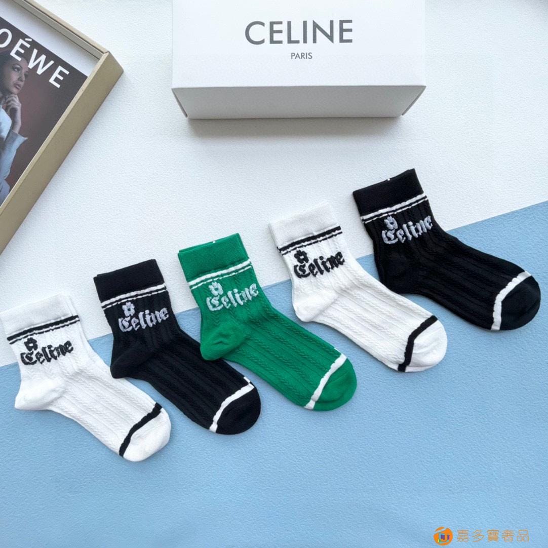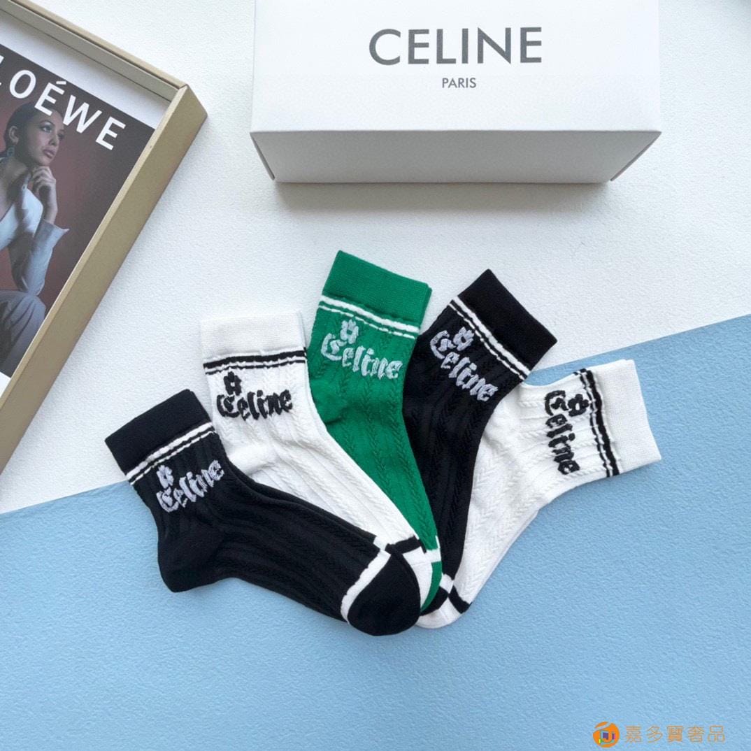 配包装【一盒五双】?Celine赛琳 爆款中筒袜?高版本