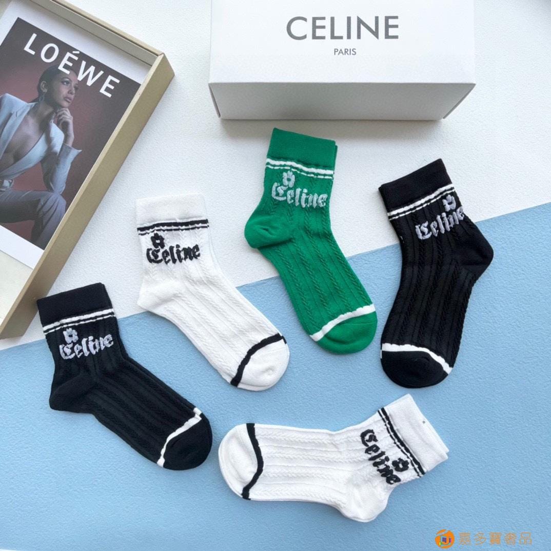 配包装【一盒五双】?Celine赛琳 爆款中筒袜?高版本 ~好看到爆炸 欧美大牌中筒袜??潮人必不能少的专柜代购品质 袜子 ,搭配起来超高逼格 时髦度爆表啊啊啊啊~~推荐推荐推荐~~必入时髦小单品!!