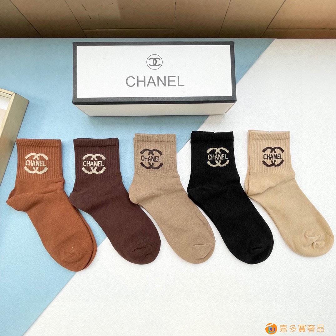 配包装【一盒五双】?Chanel 香奈儿 爆款卡中筒袜?高版本 ~好看到爆炸 欧美大牌中筒袜??潮人必不能少的专柜代购品质 袜子 ,搭配起来超高逼格 时髦度爆表啊啊啊啊~~推荐推荐推荐~~必入时髦小单品!!