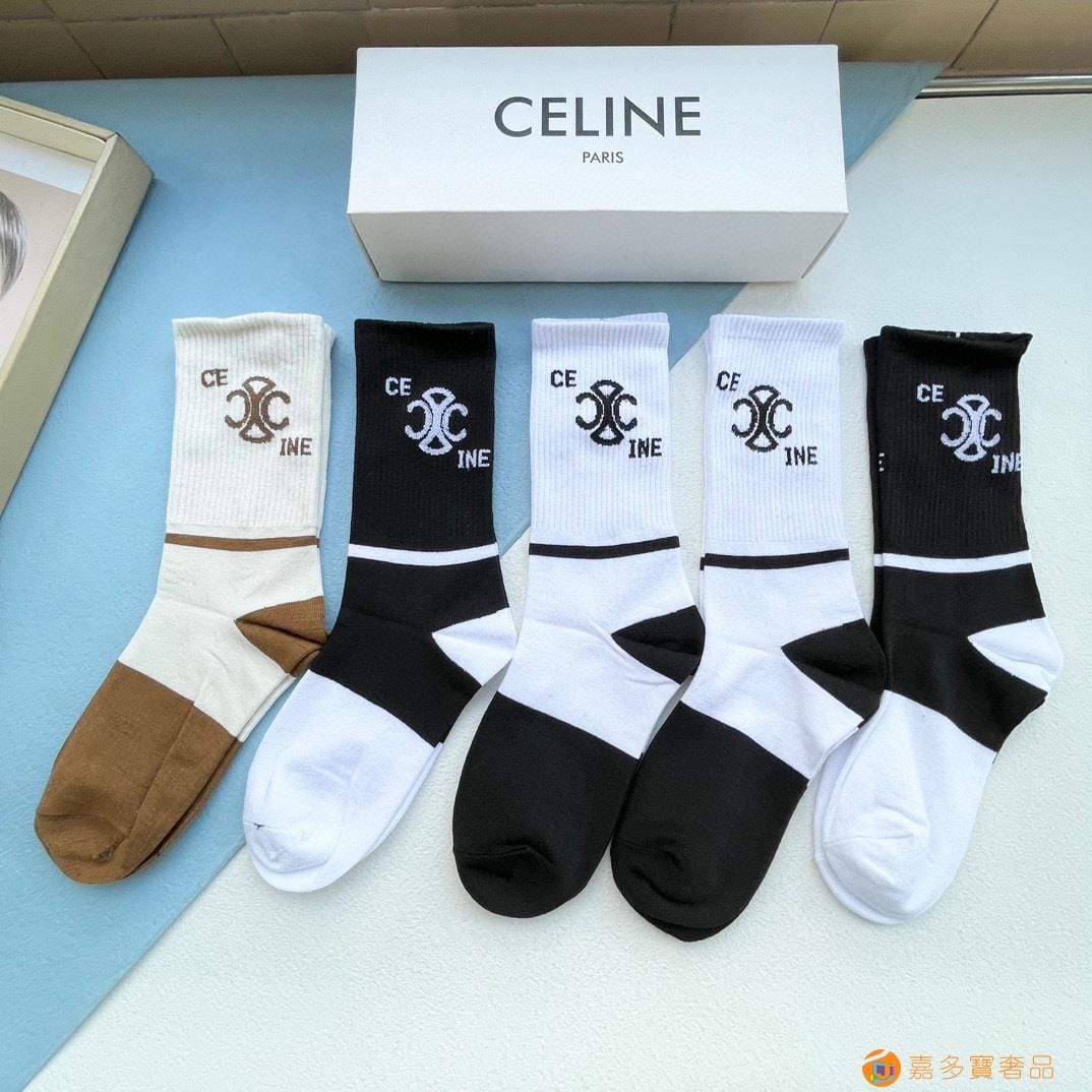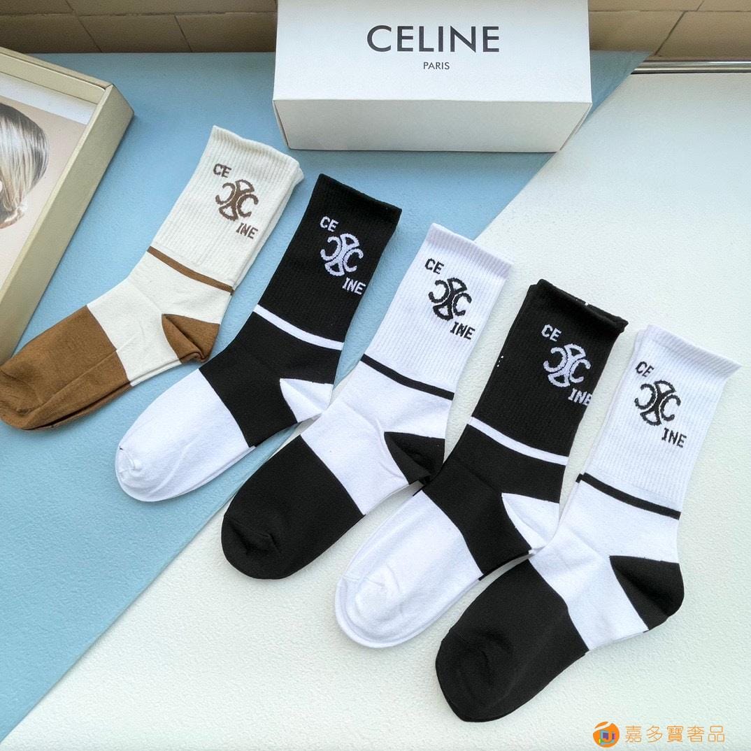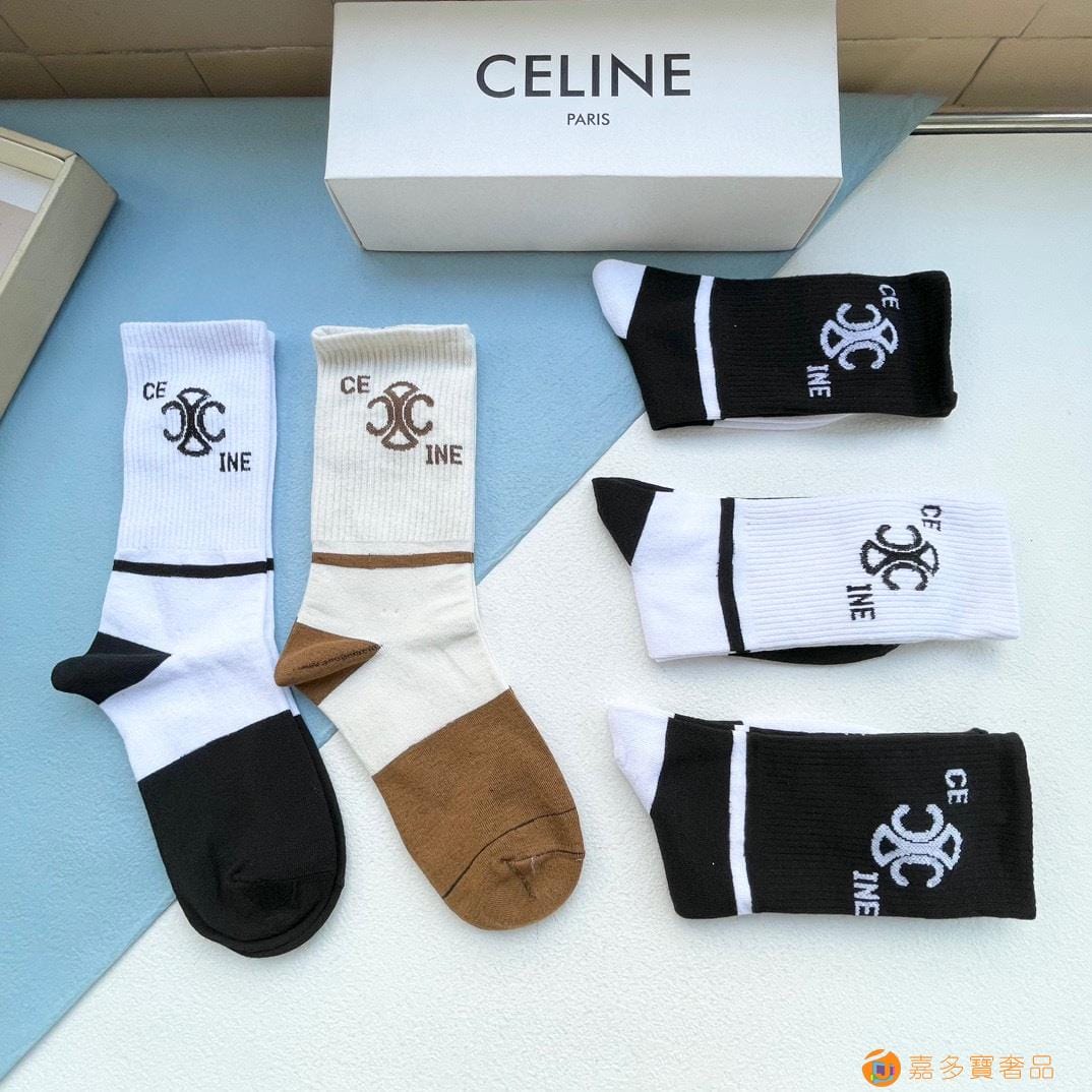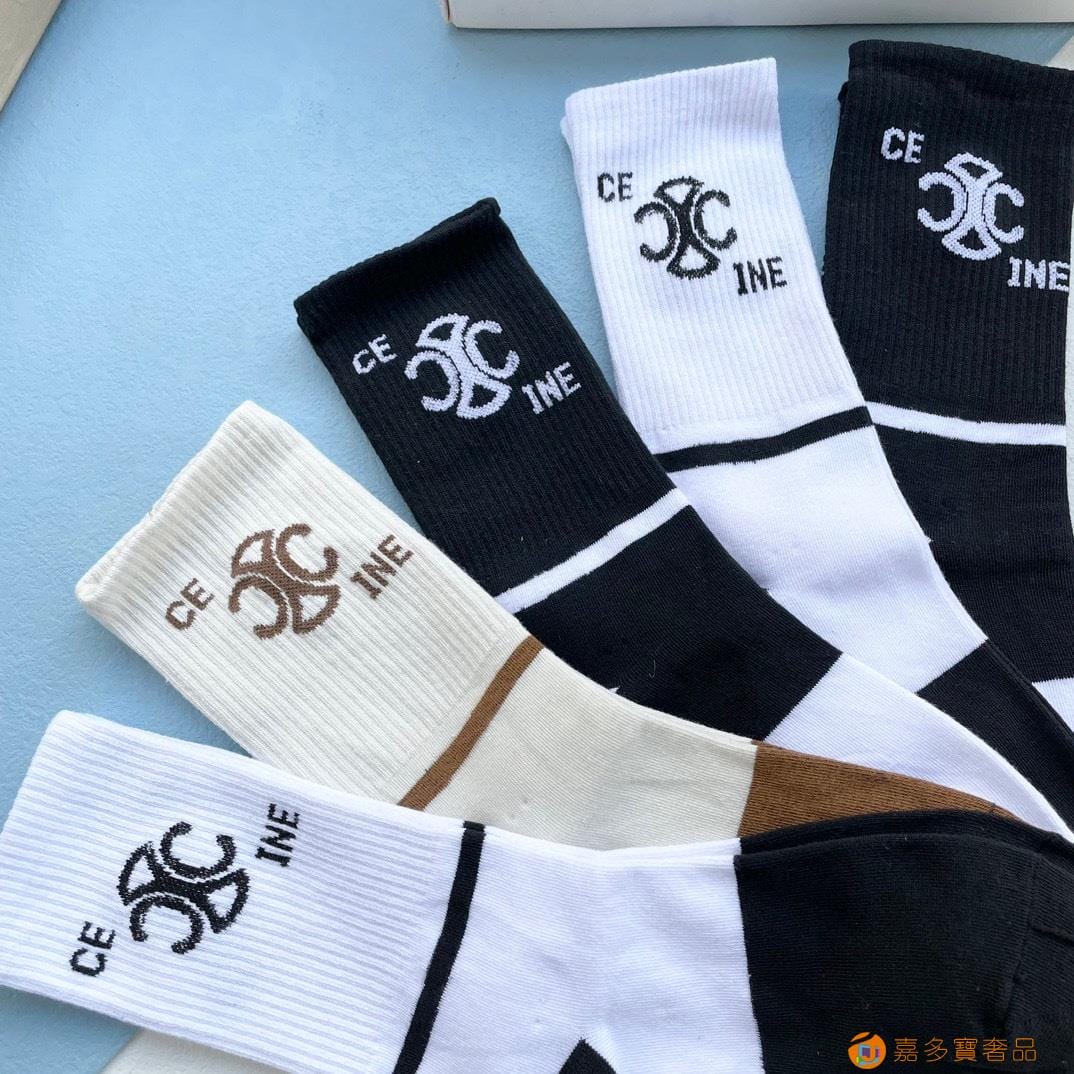 配包装【一盒四双】CELINE · 赛琳??高品质?超级爆款网红袜子??ce家官网同步刺绣字母中筒袜,ins明星网红推荐??火爆至极?纯棉材质,轻薄柔软透气,四季通用,欧美大牌街头必备?