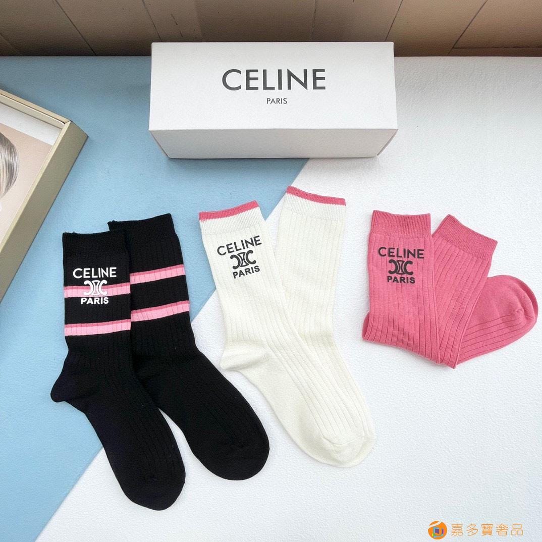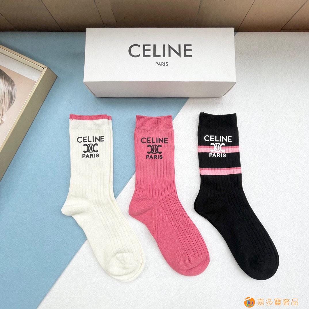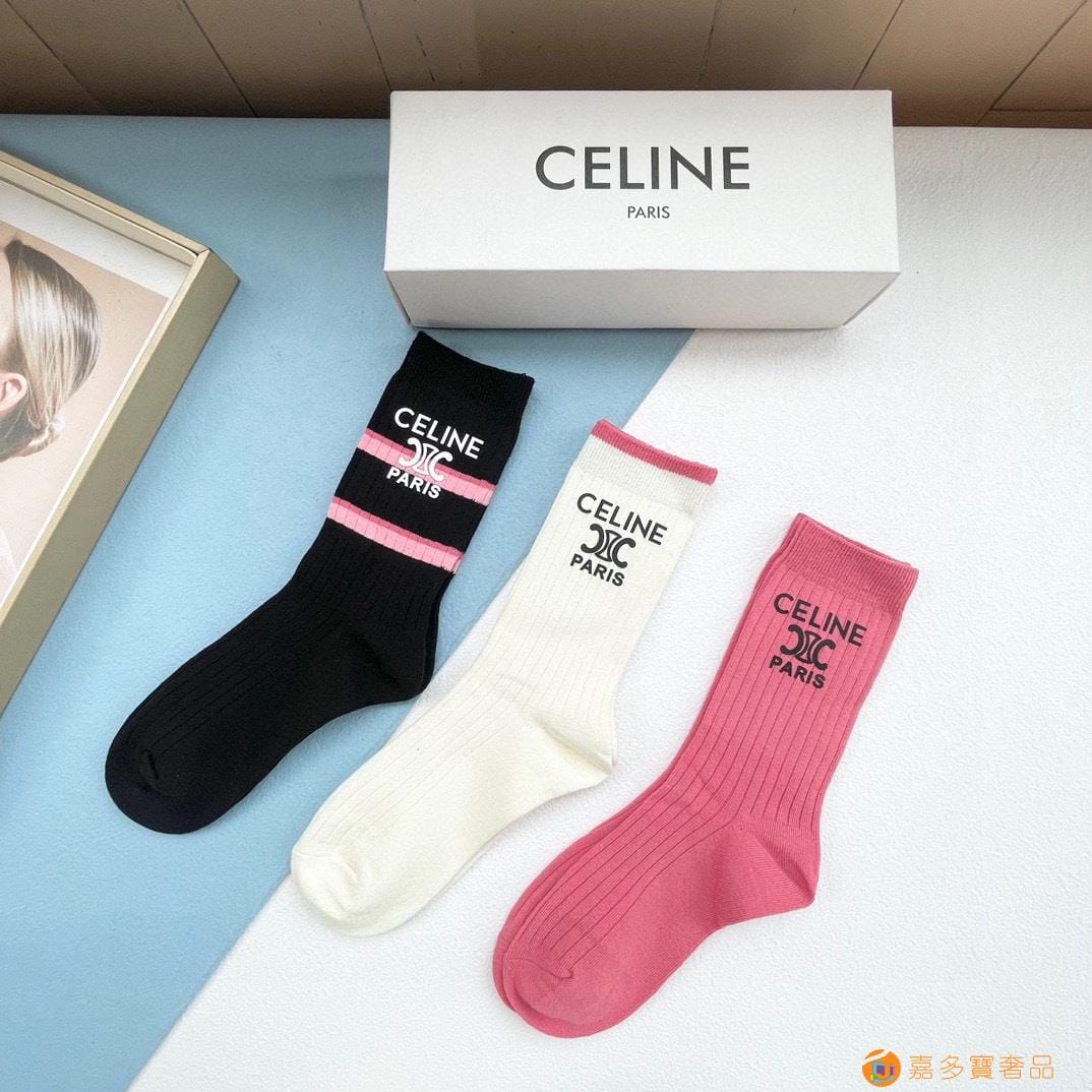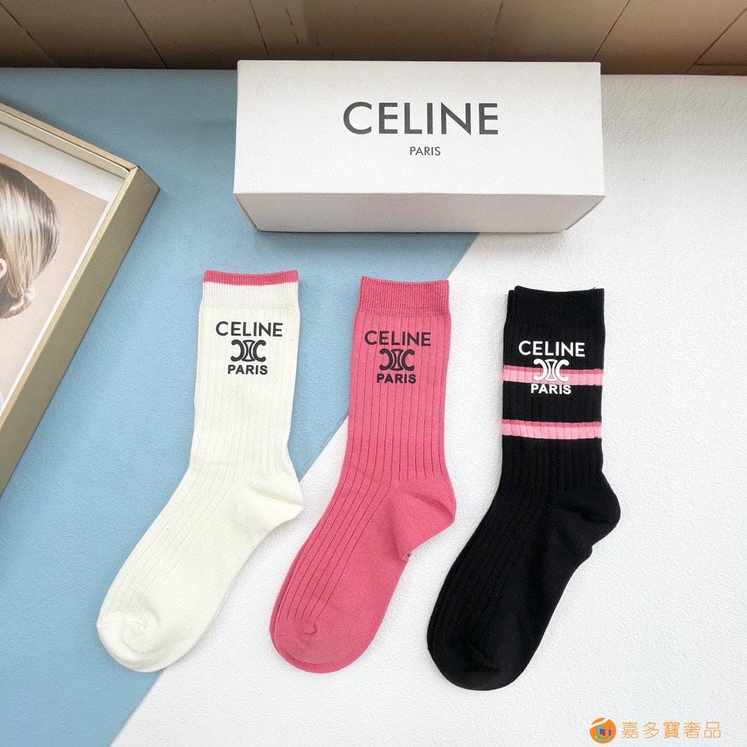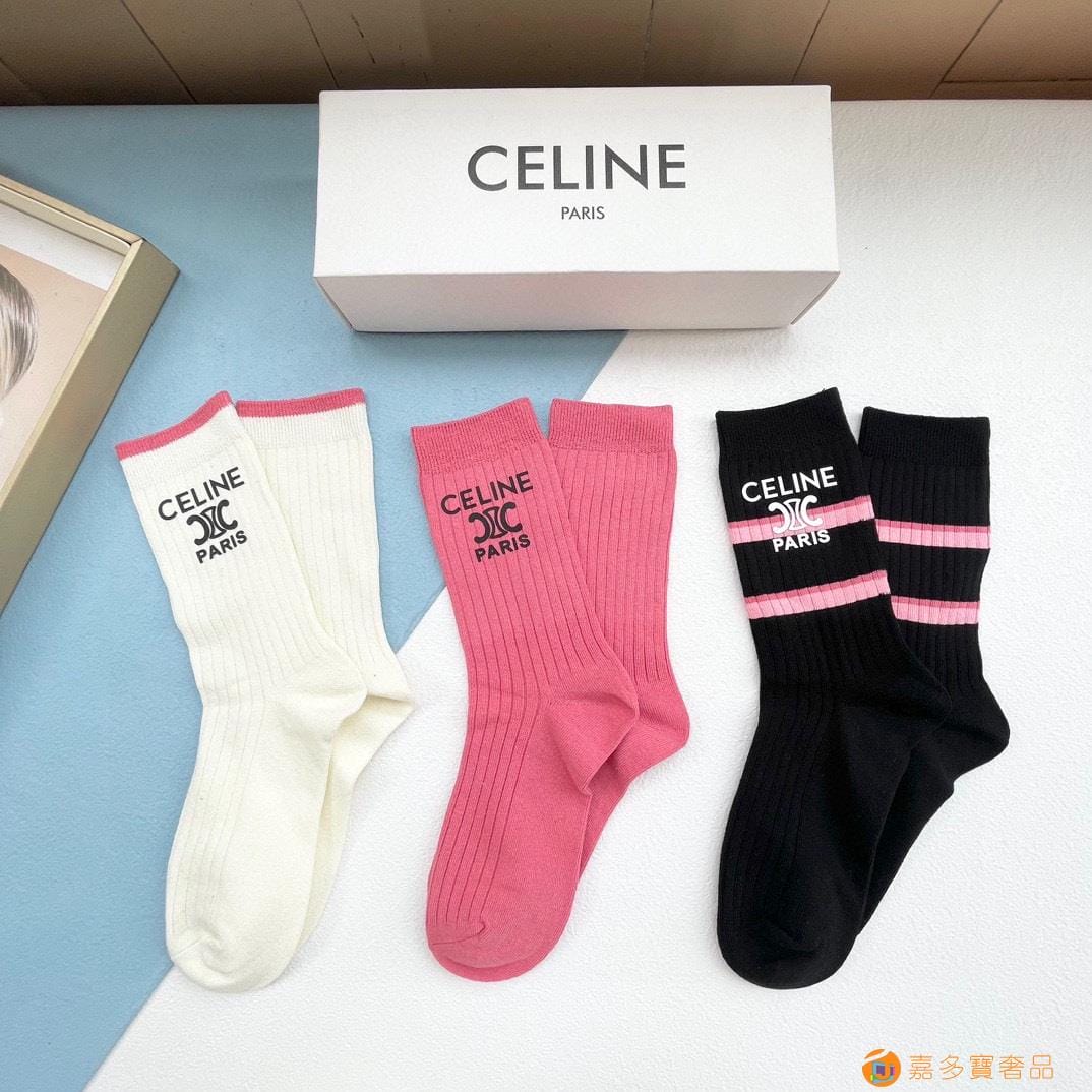 配包装【一盒三双】?Celine赛琳 爆款中筒袜?高版本