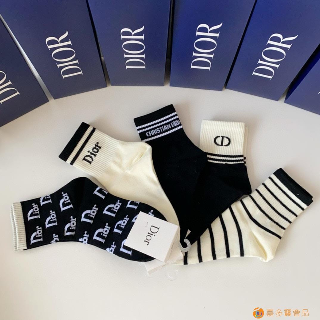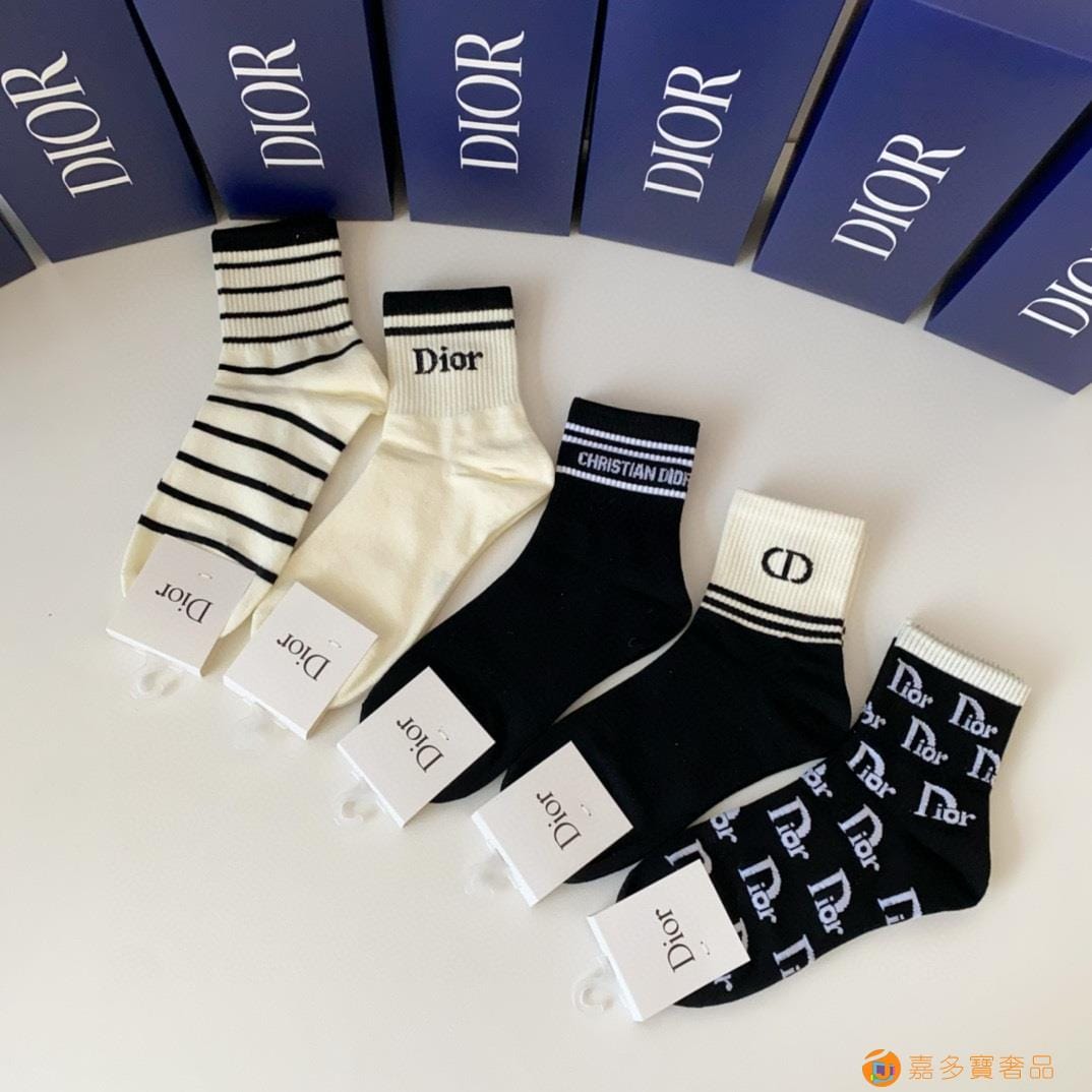 DIOR(迪奥)新款中长款堆堆袜袜子!一盒五双