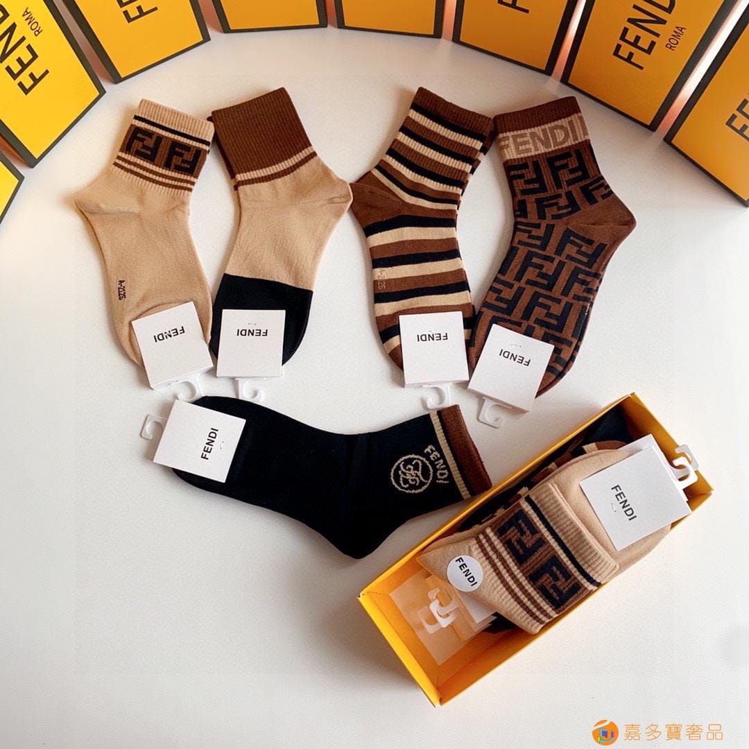 FENDI(芬迪)新款经典中长款堆堆袜袜子!一盒五