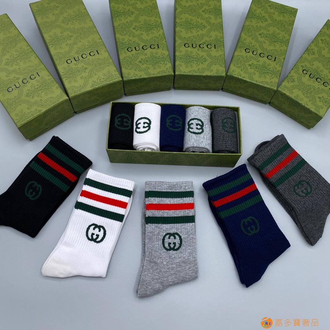 配包装【一盒五双】Gucci · 古奇??网红爆款出货~G家新品专柜对版袜子??纯棉材质织造,超级柔软舒适,罗口经典金线双G,超级抢眼,ins超火爆小单品,大牌出街,潮人必备?超好搭??