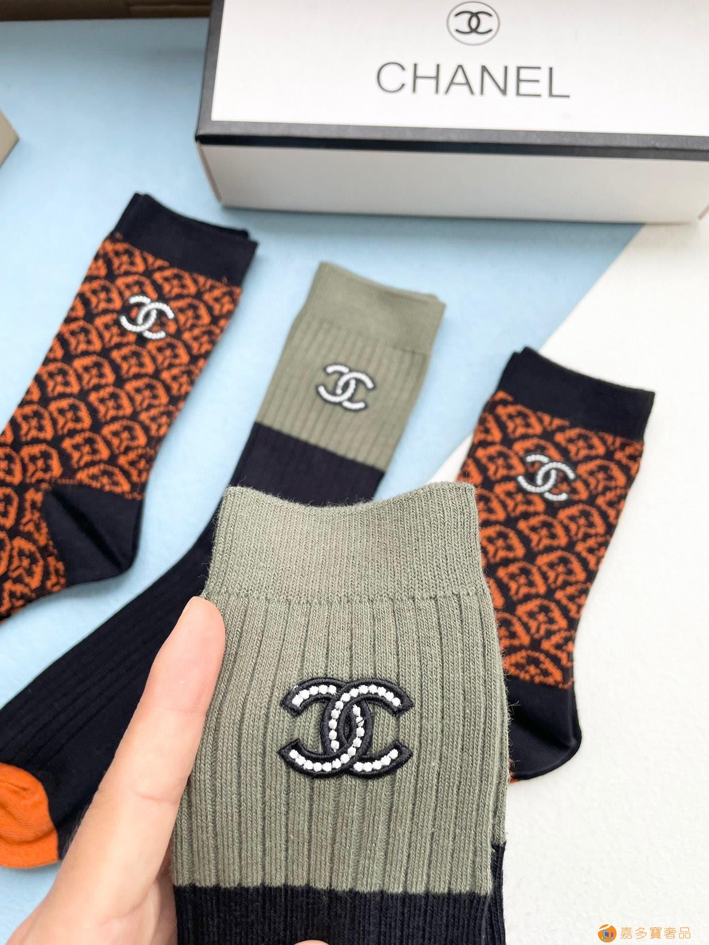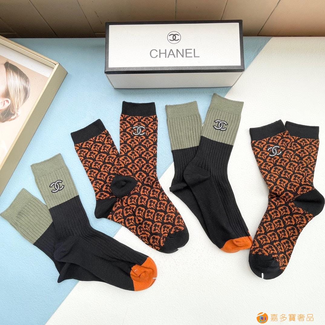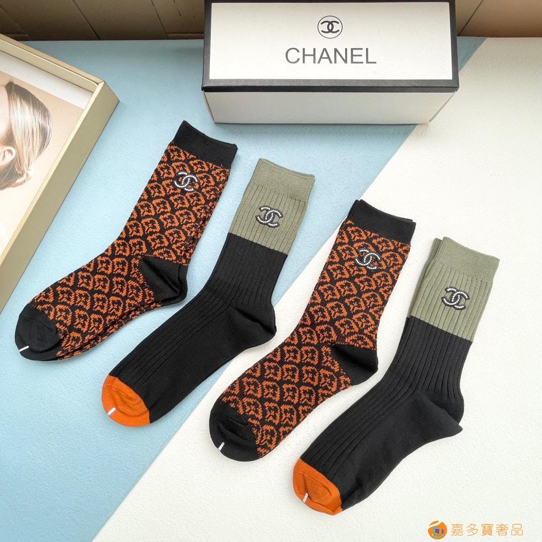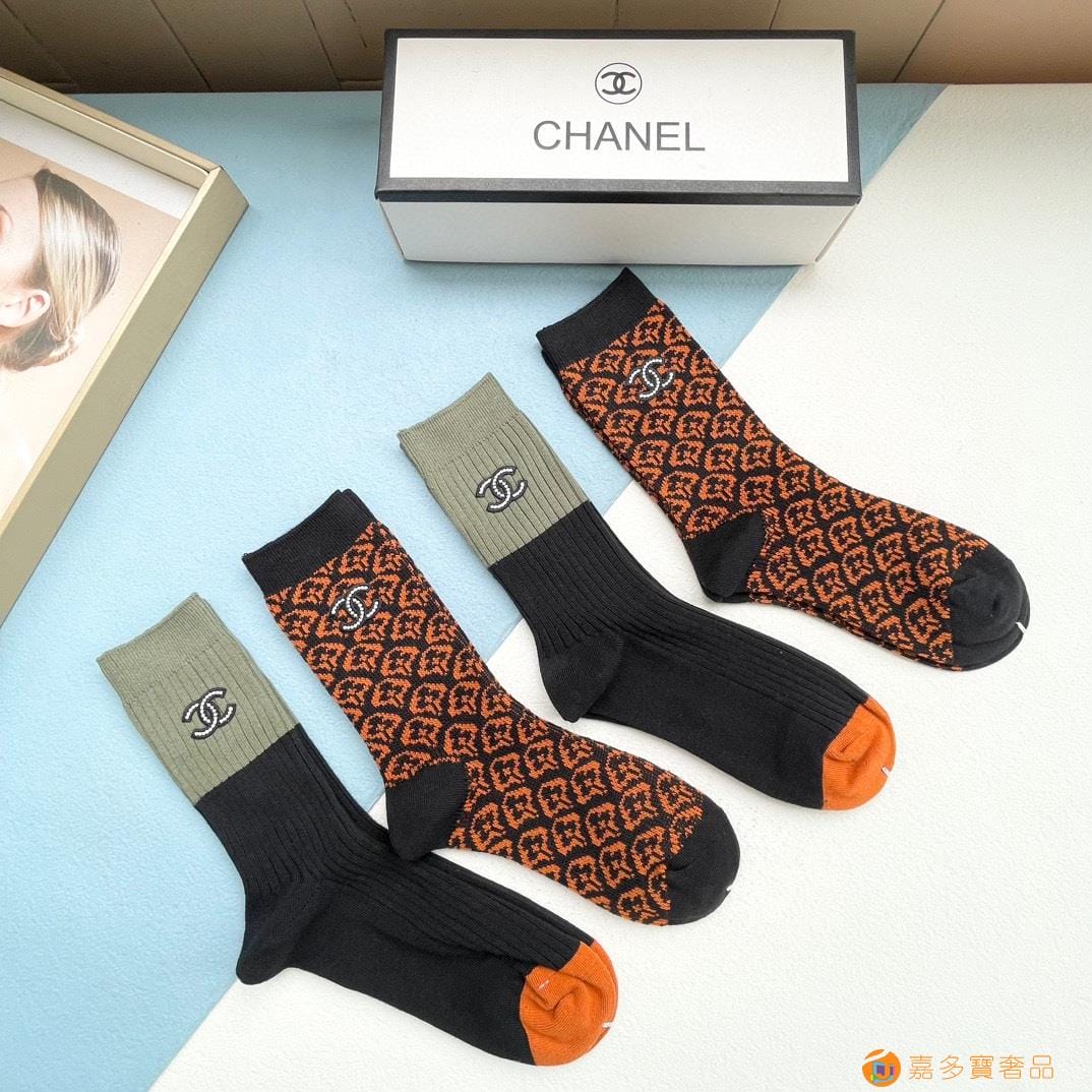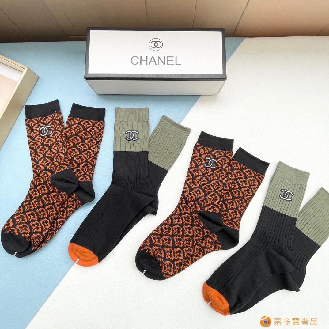 配包装【一盒四双】CHANEL · 香奈儿??高品质?超级爆款网红袜子??小香家官网同步饰品字母中筒袜,ins明星网红推荐??火爆至极?纯棉材质,轻薄柔软透气,四季通用,欧美大牌街头必备?