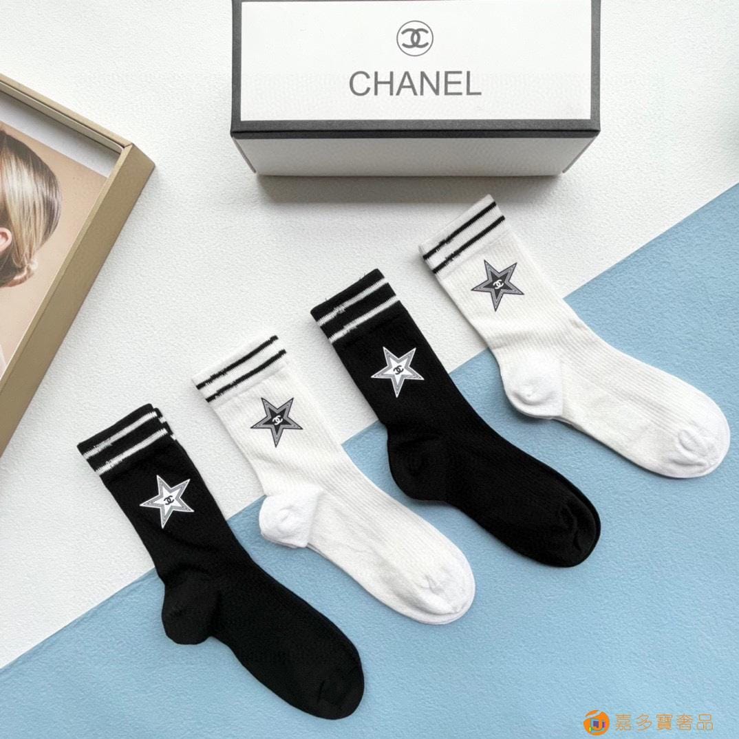 配包装【一盒四双】?CHANEL香奈儿 爆款高筒袜?高版本 ~好看到爆炸 欧美大牌高筒袜??潮人必不能少的专柜代购品质 袜子 ,搭配起来超高逼格 时髦度爆表啊啊啊啊~~推荐推荐推荐~~必入时髦小单品!!