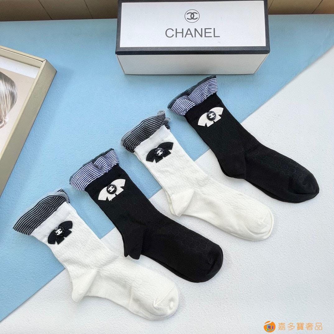 配包装【一盒四双】CHANEL · 香奈儿??高品质?超级爆款网红袜子??小香家官网同步饰品字母中筒袜,ins明星网红推荐??火爆至极?纯棉材质,轻薄柔软透气,四季通用,欧美大牌街头必备?