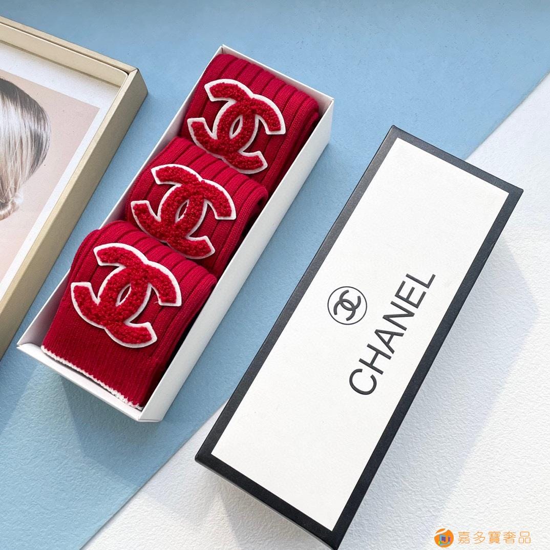 配包装【一盒三双】?CHANEL香奈儿?红红火火?过年袜?爆款重工饰品中筒袜?高版本 ~好看到爆炸 欧美大牌中筒袜??潮人必不能少的专柜代购品质 袜子 ,搭配起来超高逼格 时髦度爆表啊啊啊啊~~推荐推荐推荐~~必入时髦小单品!!