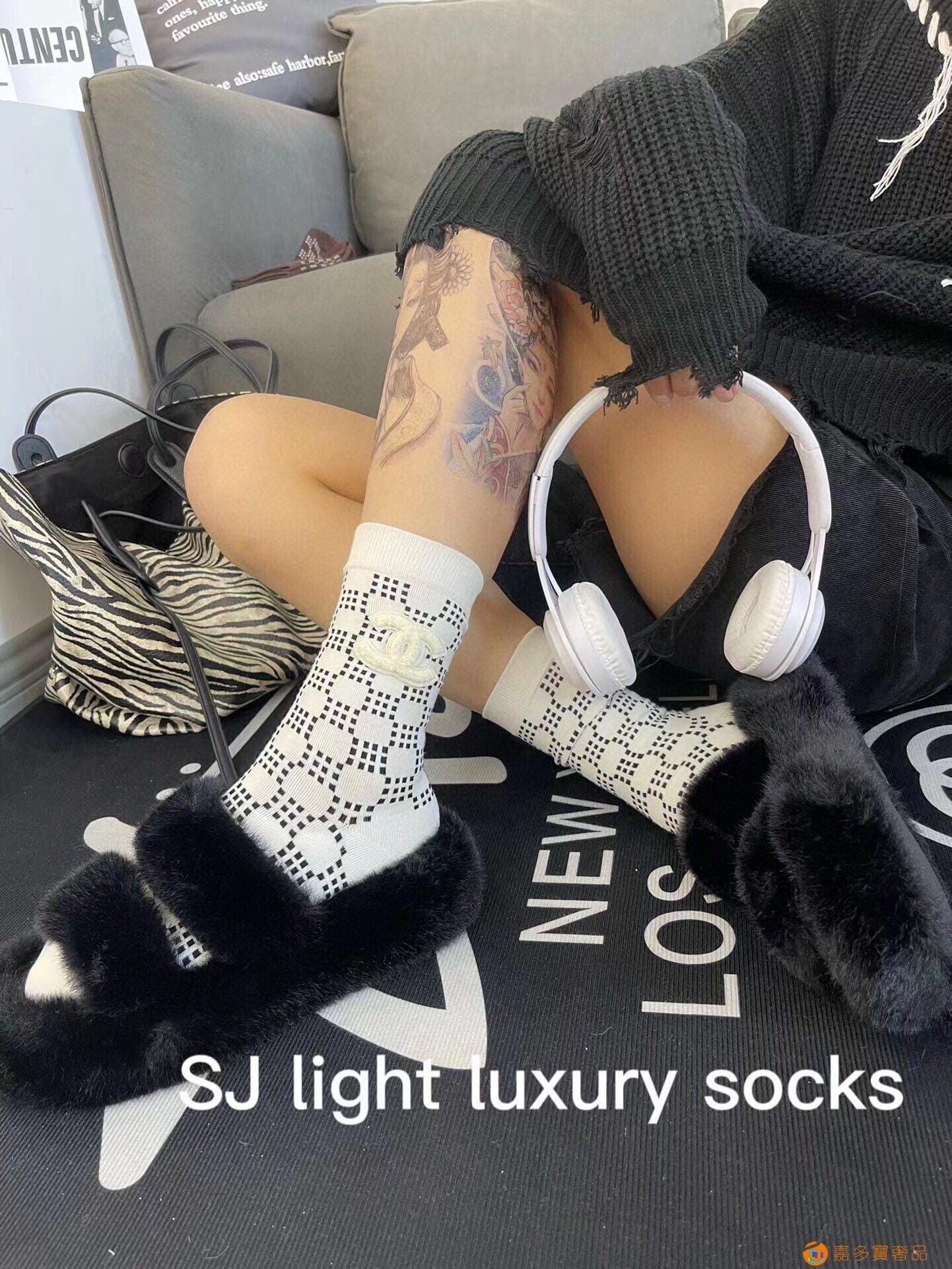 配包装【一盒三双】?CHANEL香奈儿 爆款中筒袜?高版本 ~好看到爆炸 欧美大牌中筒袜??潮人必不能少的专柜代购品质 袜子 ,搭配起来超高逼格 时髦度爆表啊啊啊啊~~推荐推荐推荐~~必入时髦小单品!!