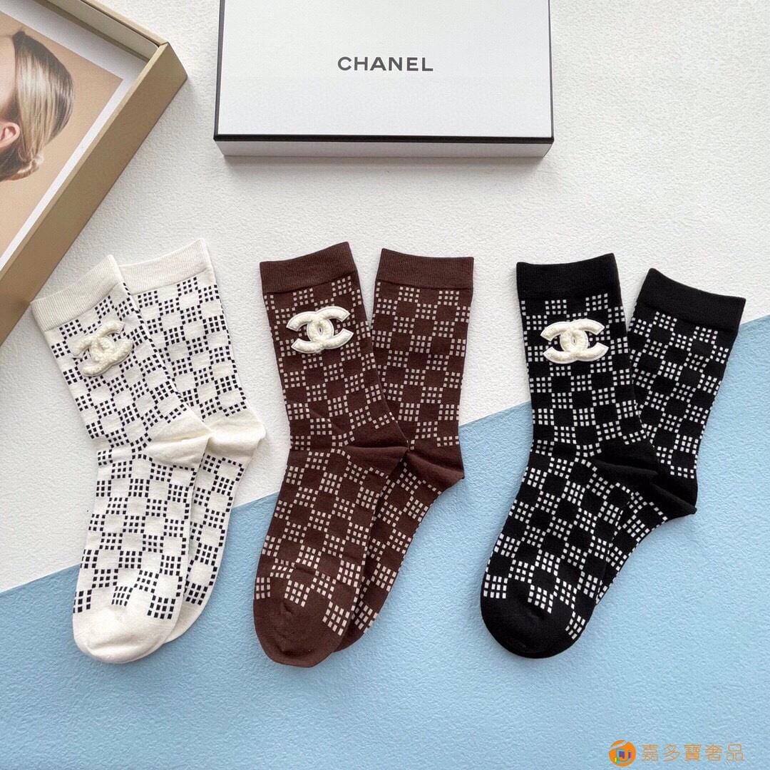 配包装【一盒三双】?CHANEL香奈儿 爆款中筒袜?高版本