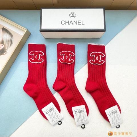 配包装【一盒三双】?CHANEL香奈儿?红红火火?过年袜?爆