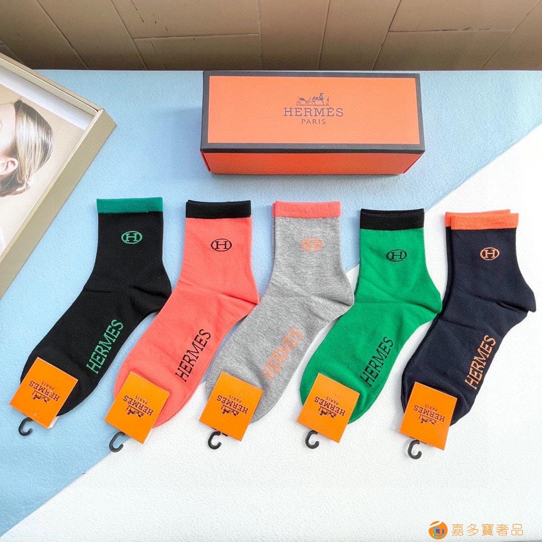 配包装 【一盒五双】HERMER · 爱马仕经典中筒袜子??