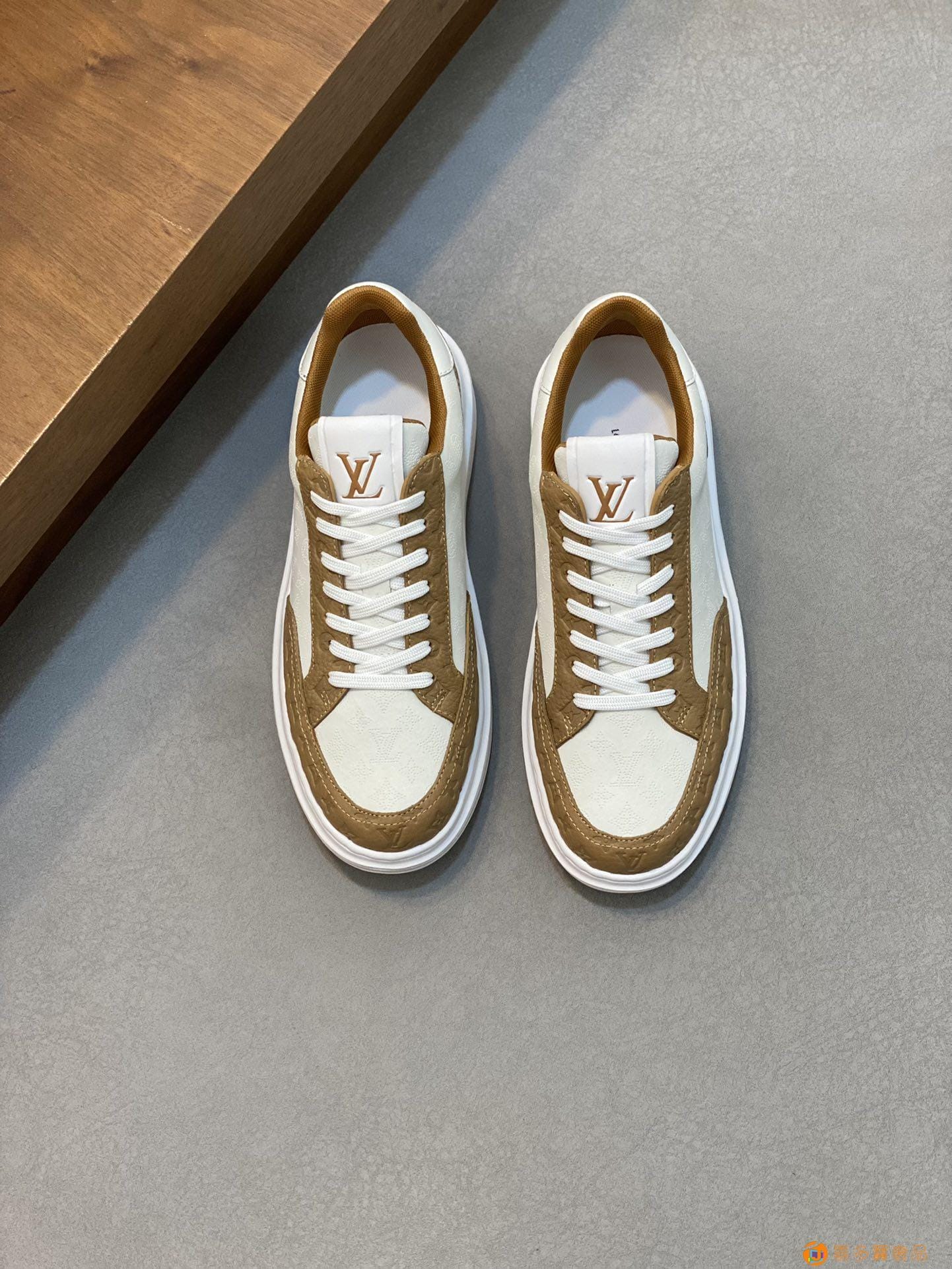 ?【LV】路易威登 -高端品质 原单 -鞋面:?纳帕小牛皮、高周波品牌logo -内里:高弹力帆布布匹,牛皮垫脚 -大底:超轻?TU发泡?成型大底 -超高品控·做工精细:凸显(高端·贵气·档次) -Size :-(可订做)