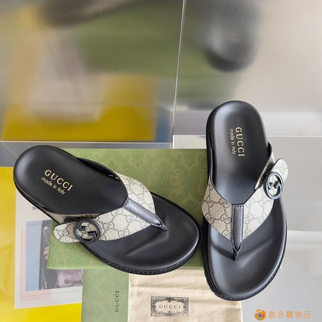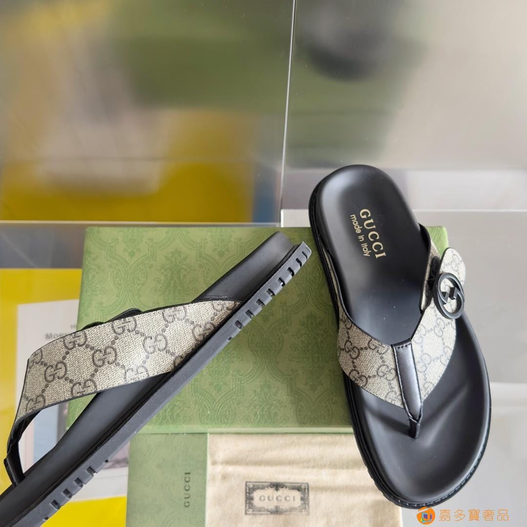 ?Gucci 古奇 夏季新款 双G 老花 夹脚 一字拖 交叉凉鞋 厚底 拖鞋 沙滩鞋
