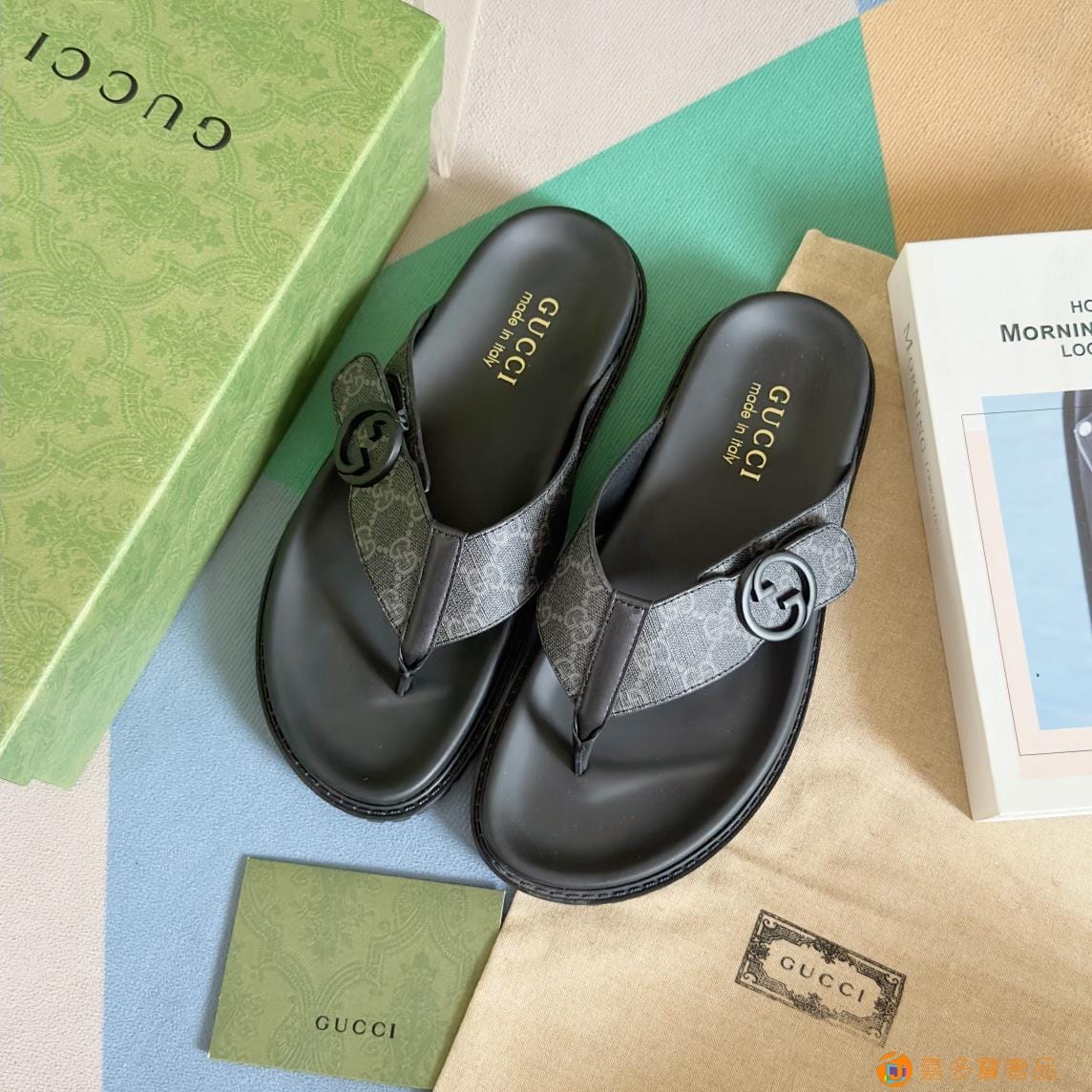 ?Gucci 古奇 夏季新款 双G 老花 夹脚 一字拖 交叉凉鞋 厚底 拖鞋 沙滩鞋