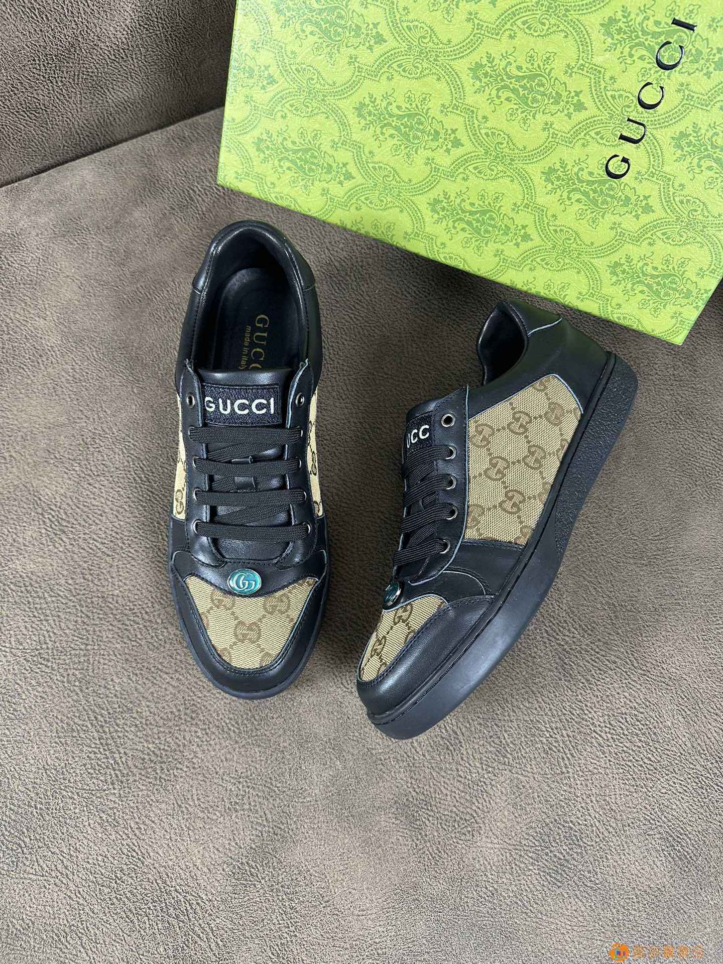 Gucci 古奇系列最 新款精心打造,引爆全场!不断创新的国际品牌 此款男士四季运动休闲鞋,原版版本,鞋面采用牛皮面料 ,皮垫脚?真爆超轻防滑大底,透气舒适以质量说话? 达 颜色:二色 码数:-