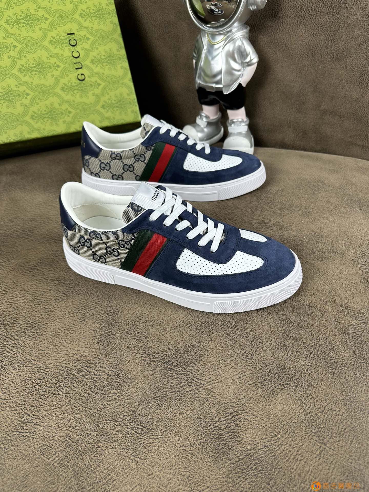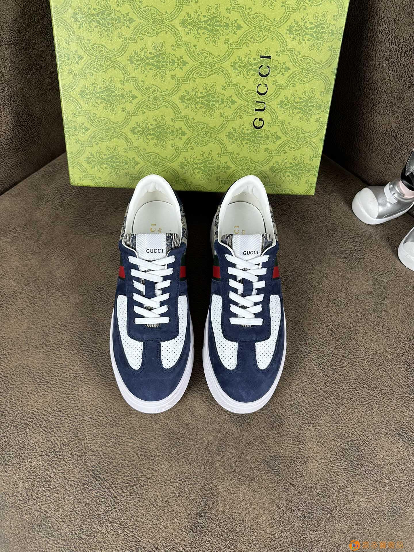 ?古奇 系列最 新款精心打造,引爆全场!不断创新的国际品牌 此款男士四季运动休闲鞋,原版版本,鞋面采用加厚仿水布配牛皮面料 ,皮垫脚?超轻防滑大底,透气舒适以质量说话?鑫 颜色:二色 码数:-