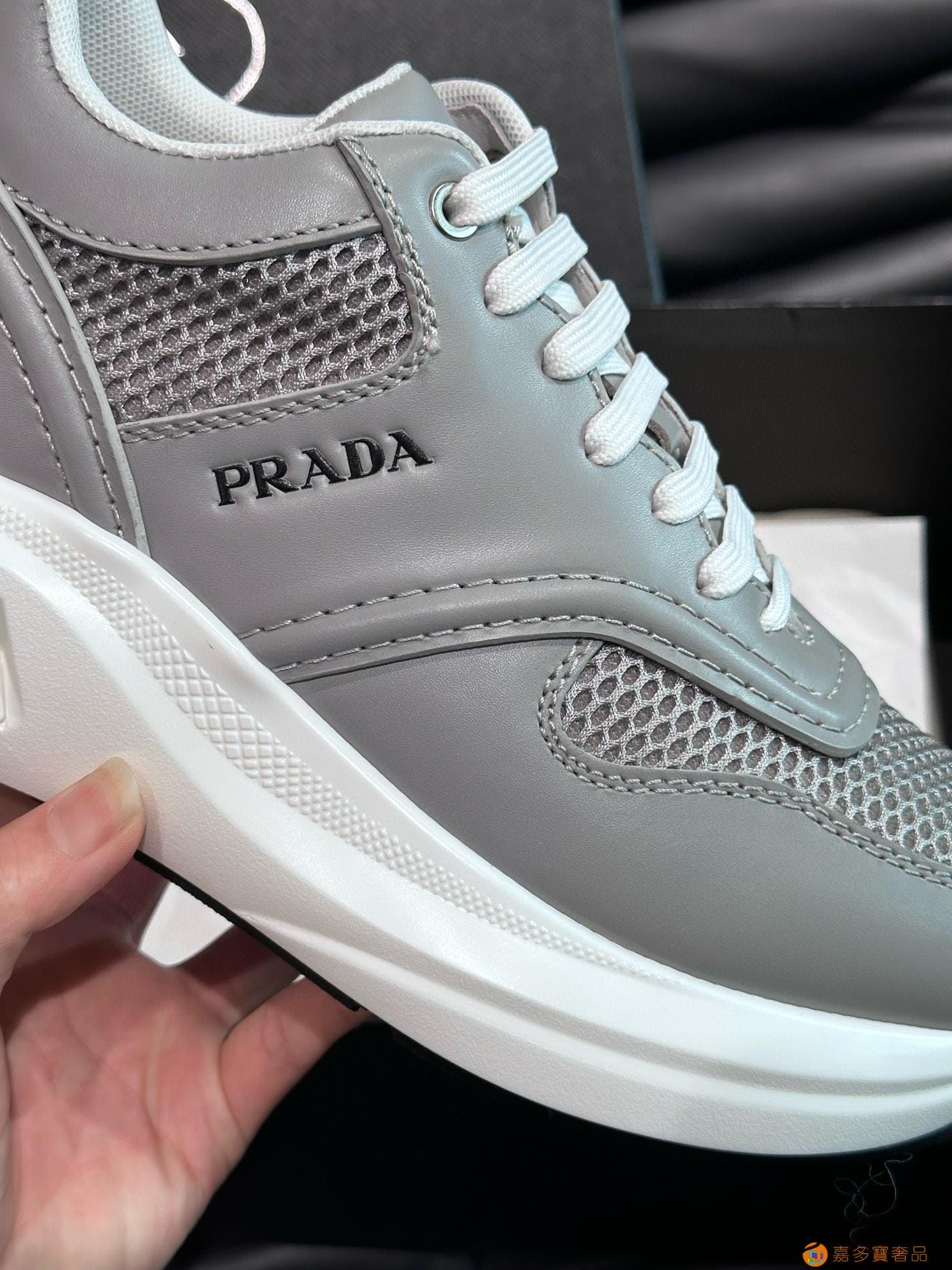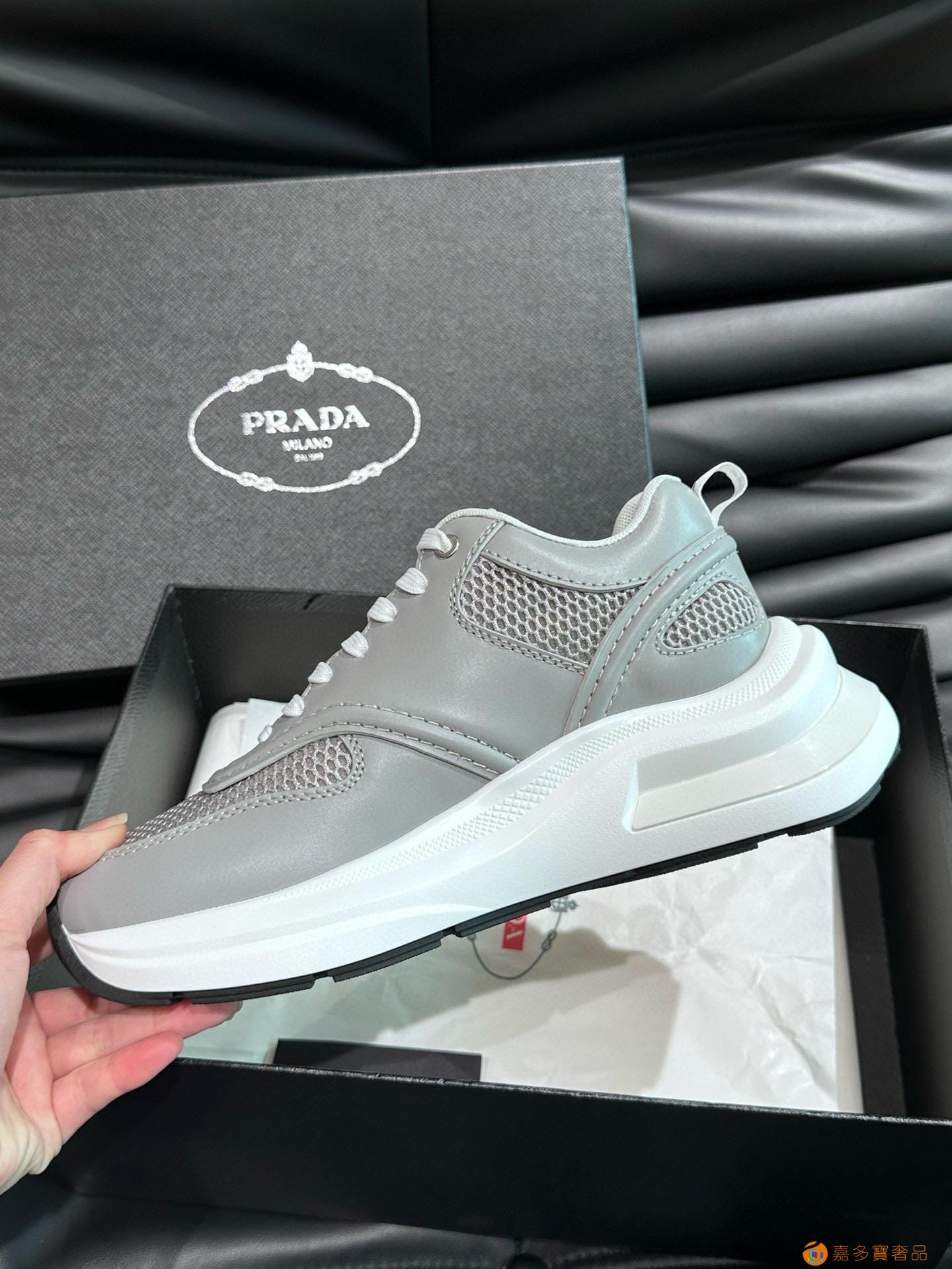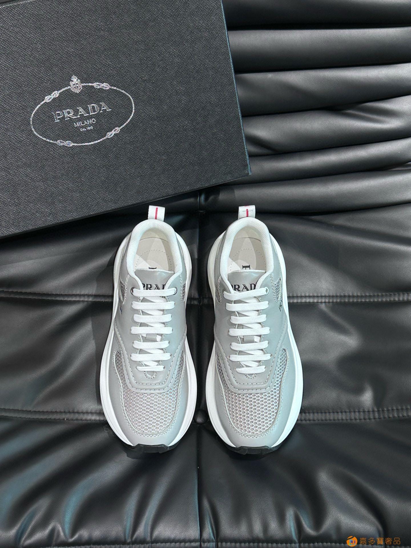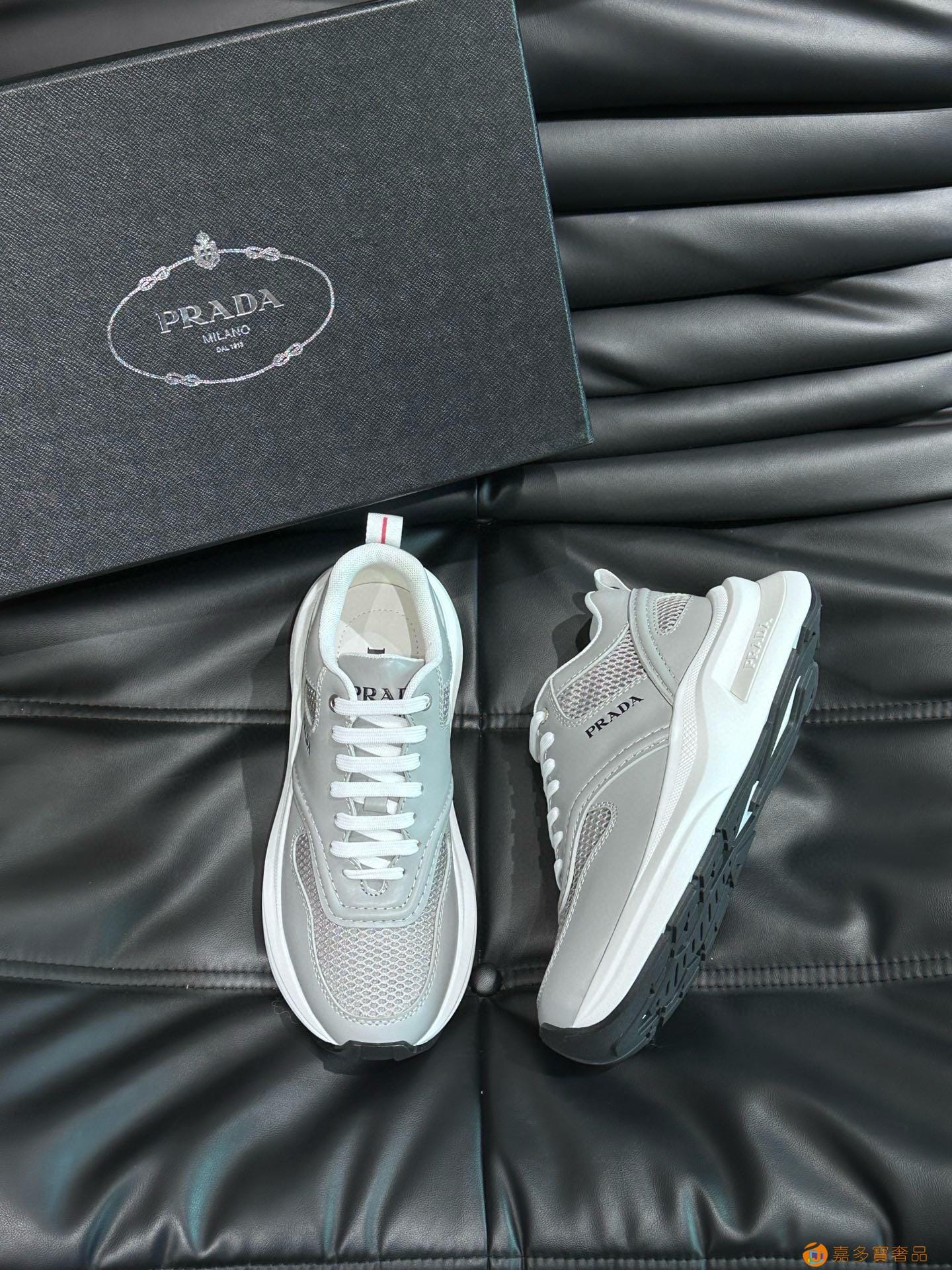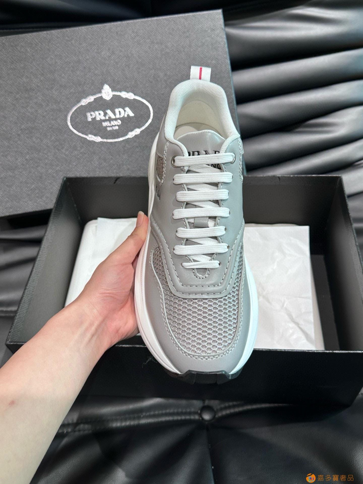 ?:{普拉达}男士皮革休闲运动鞋,莞产猛货!采用进口纯色小牛皮拼接网孔牛皮鞋面,立体几何分割,精工制造,缝线均匀,皮质质感一览无余,多色拼接,时尚大方,柔软舒适透气,外侧饰有RADA字母徽标, 鞋舌饰有经典字母logo,后跟饰有织物提鞋绊,家经典运动鞋型,搭配织物内里,烫银logo牛皮脚垫,搭配家专属橡胶大底,细节精工细作!