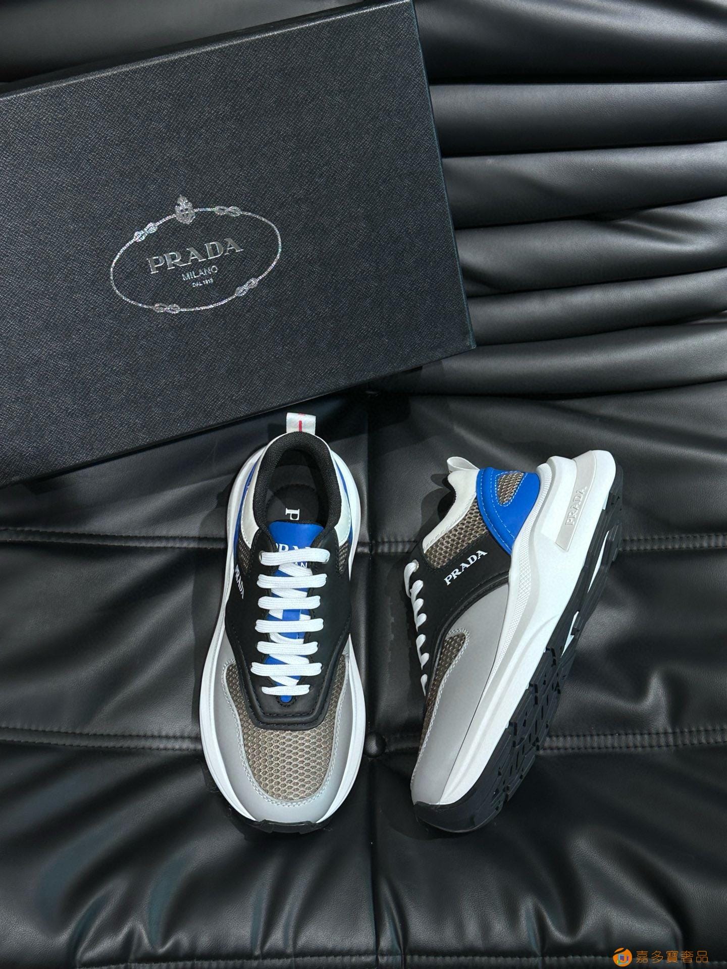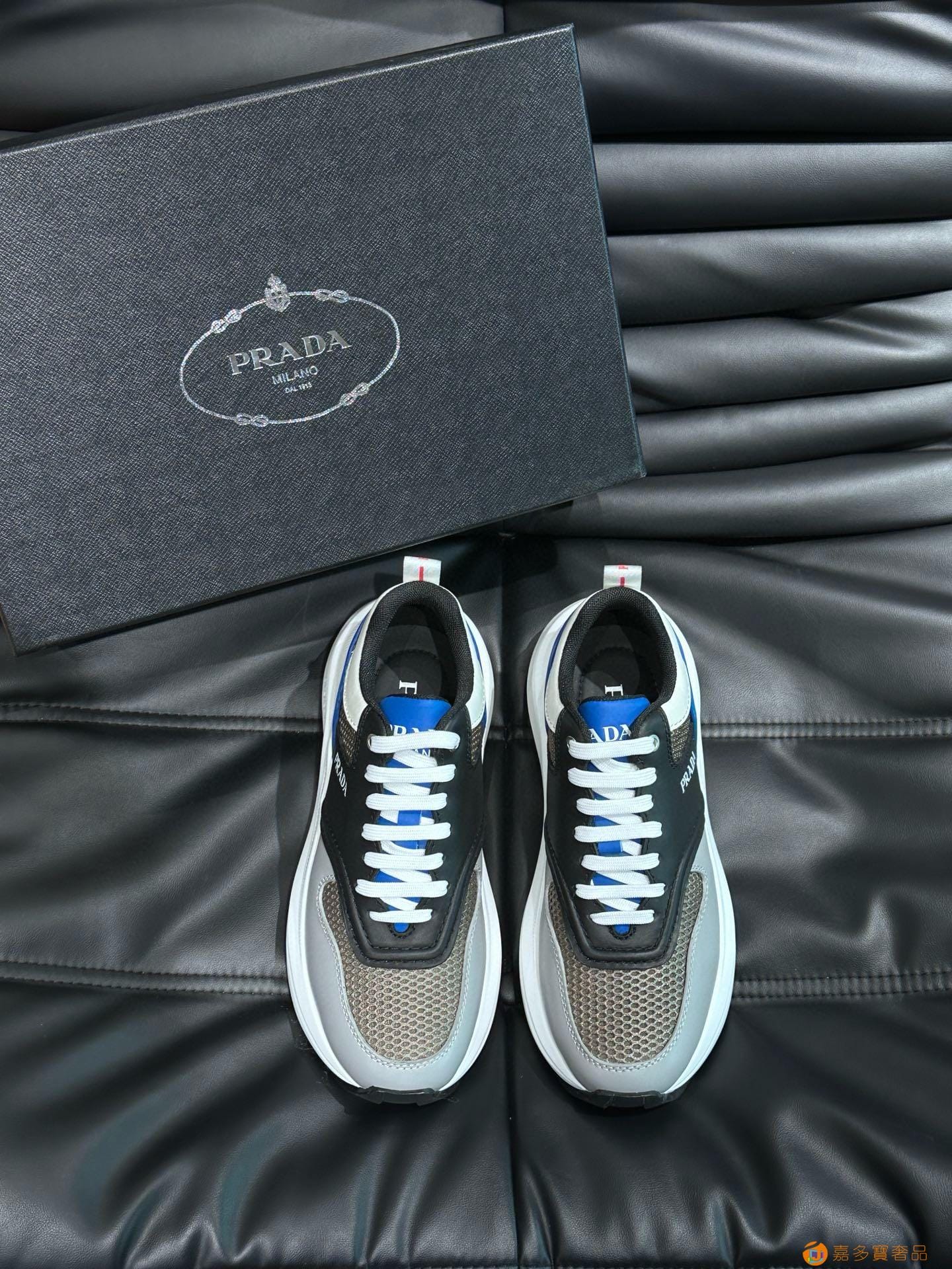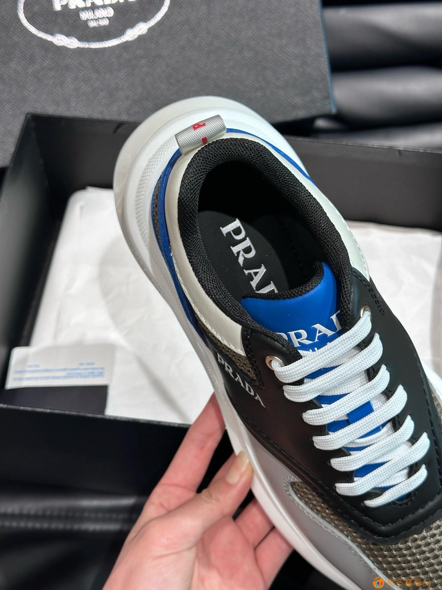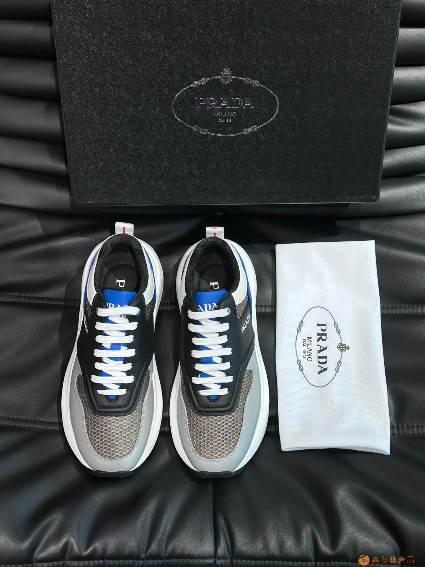 ?:{普拉达}男士皮革休闲运动鞋,莞产猛货!采用进口纯色小牛皮拼接网孔牛皮鞋面,立体几何分割,精工制造,缝线均匀,皮质质感一览无余,多色拼接,时尚大方,柔软舒适透气,外侧饰有RADA字母徽标, 鞋舌饰有经典字母logo,后跟饰有织物提鞋绊,家经典运动鞋型,搭配织物内里,烫银logo牛皮脚垫,搭配家专属橡胶大底,细节精工细作!