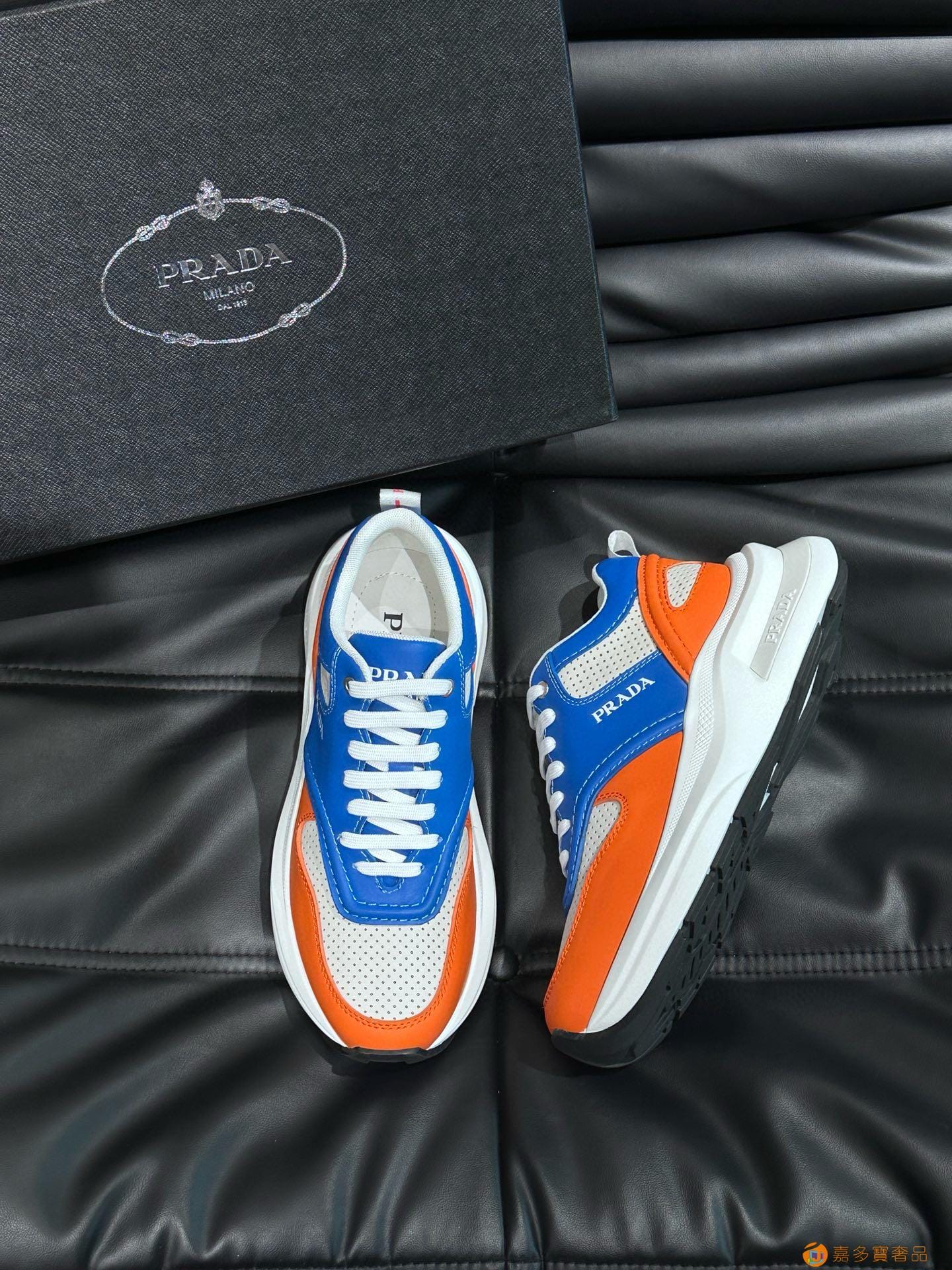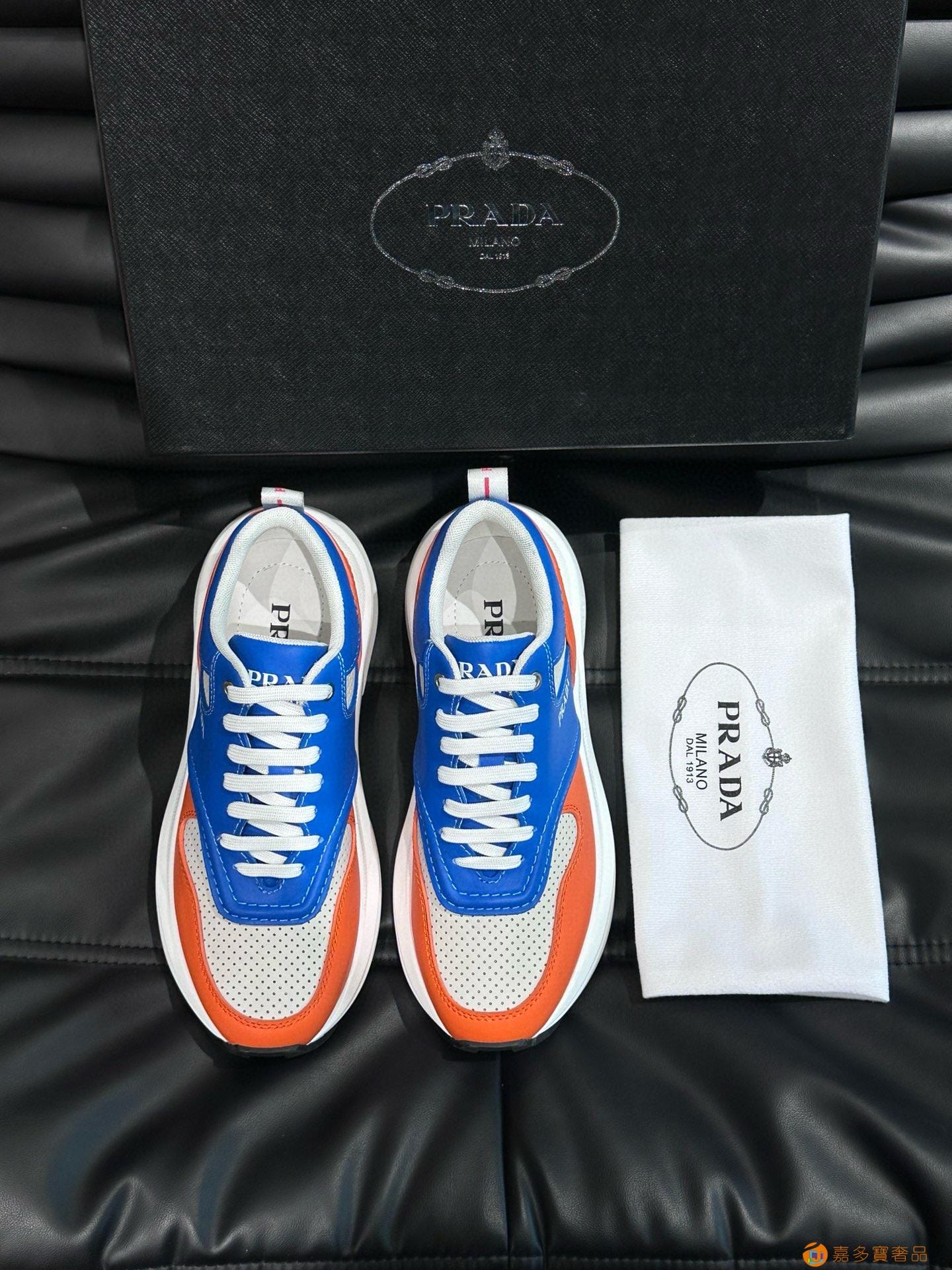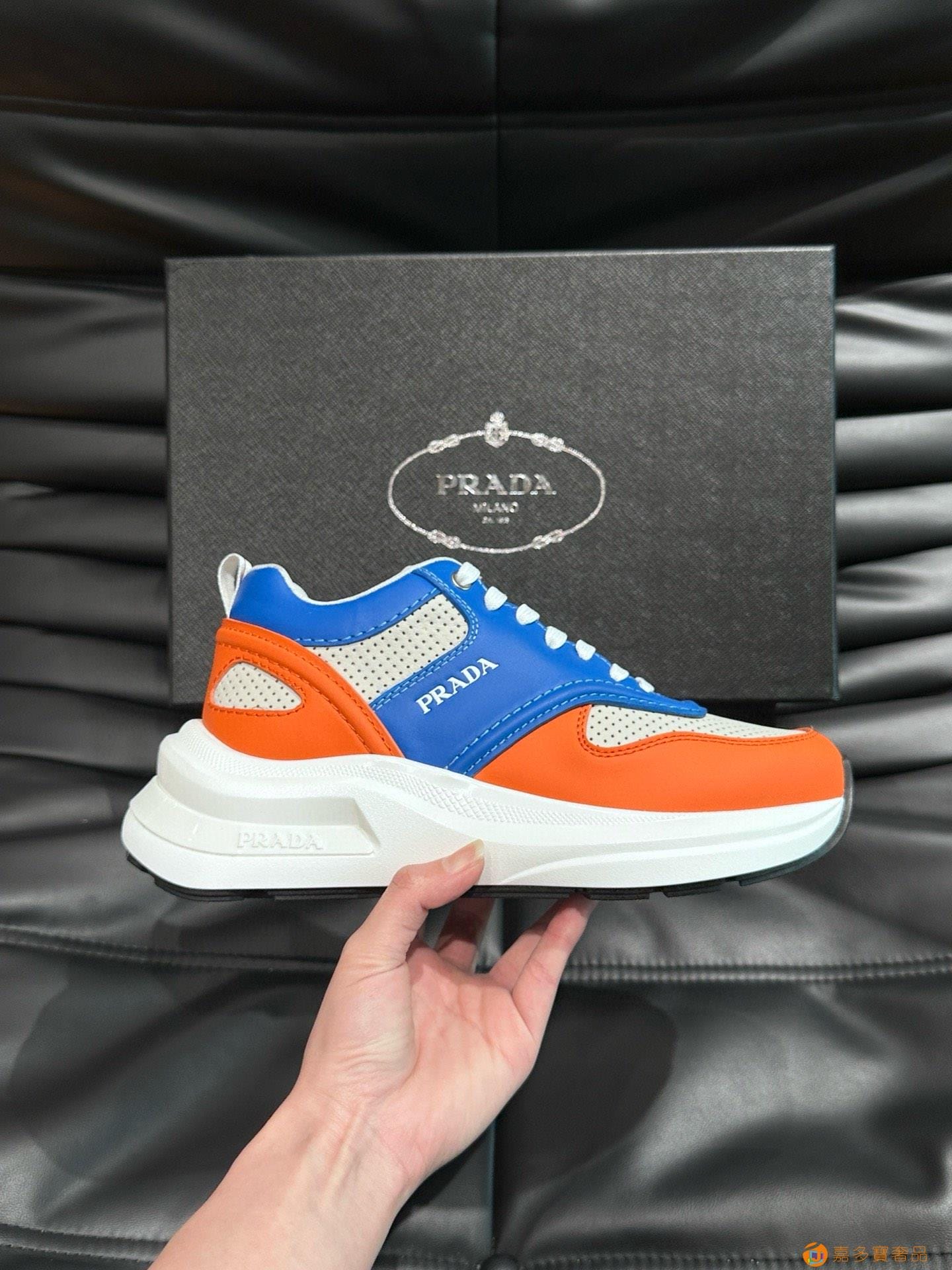 ?:{普拉达}男士皮革休闲运动鞋,莞产猛货!采用进口纯色小牛皮拼接网孔牛皮鞋面,立体几何分割,精工制造,缝线均匀,皮质质感一览无余,多色拼接,时尚大方,柔软舒适透气,外侧饰有RADA字母徽标, 鞋舌饰有经典字母logo,后跟饰有织物提鞋绊,家经典运动鞋型,搭配织物内里,烫银logo牛皮脚垫,搭配家专属橡胶大底,细节精工细作!