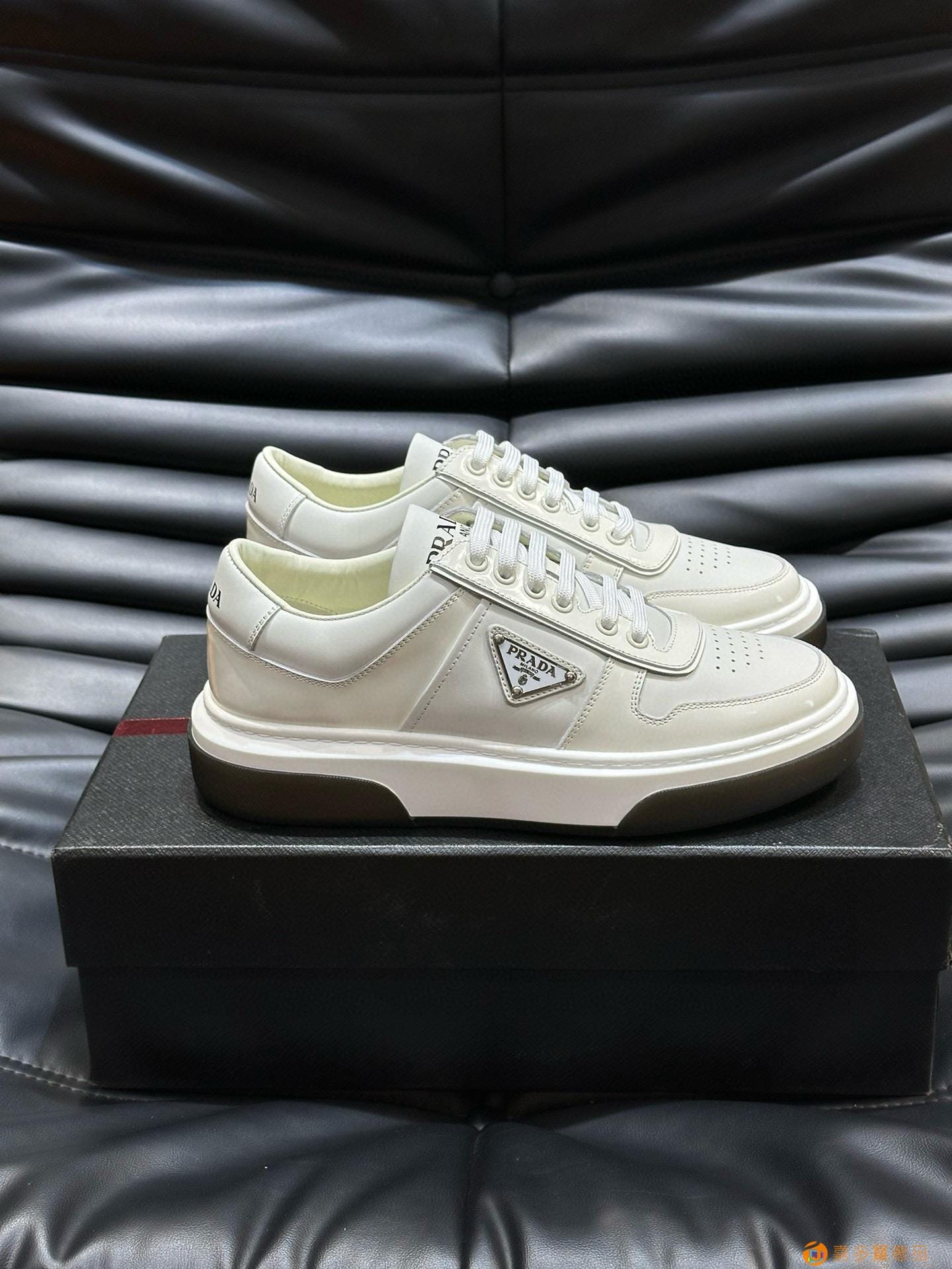 ?:{普拉达}男士皮革休闲运动鞋,莞产猛货!采用进口纯色小牛