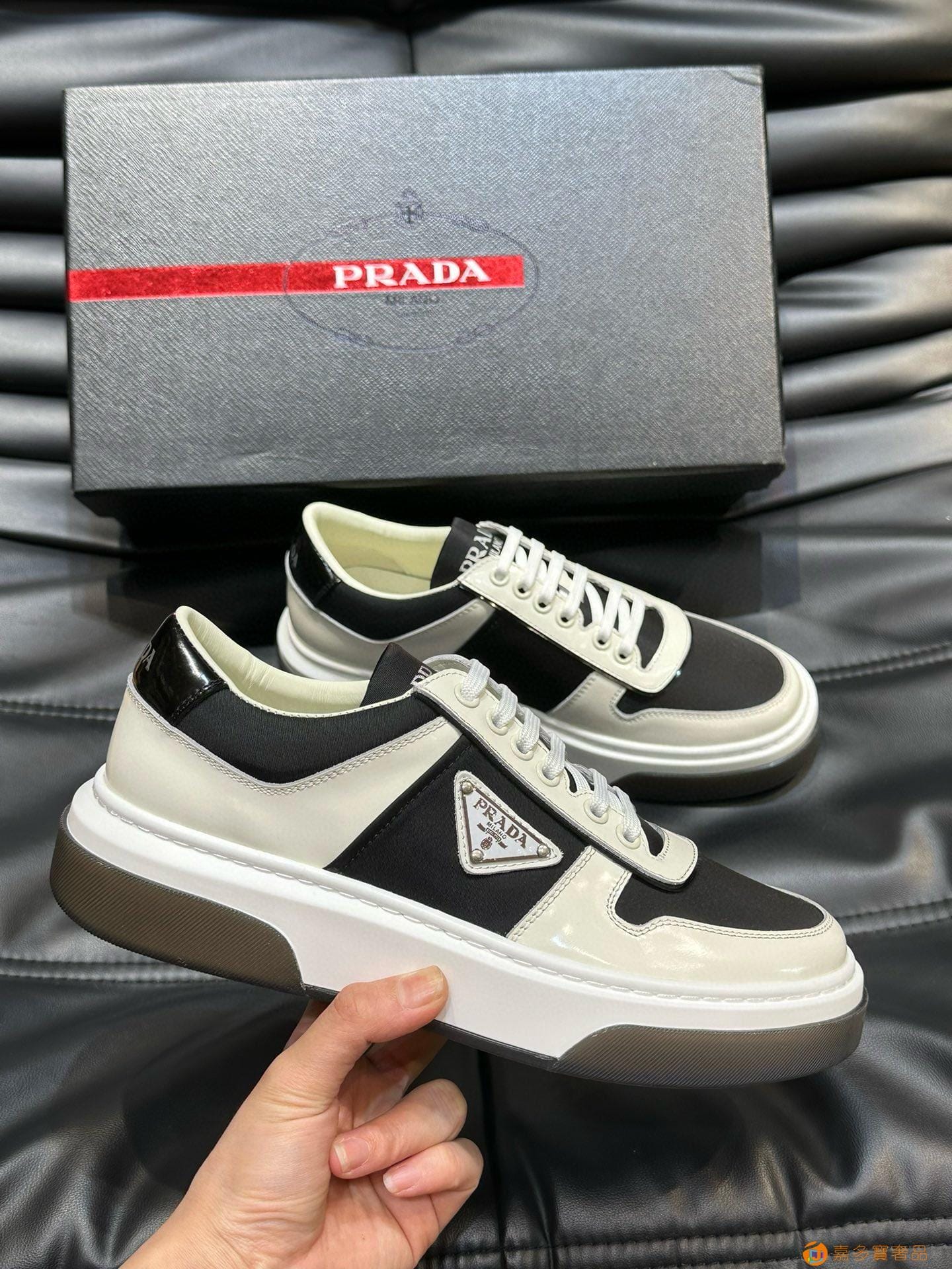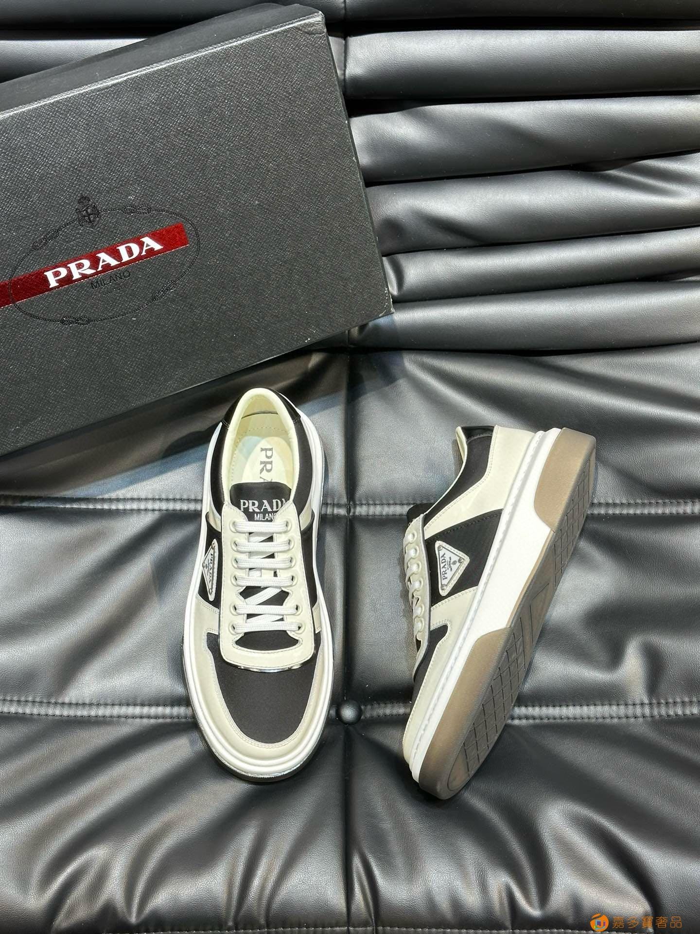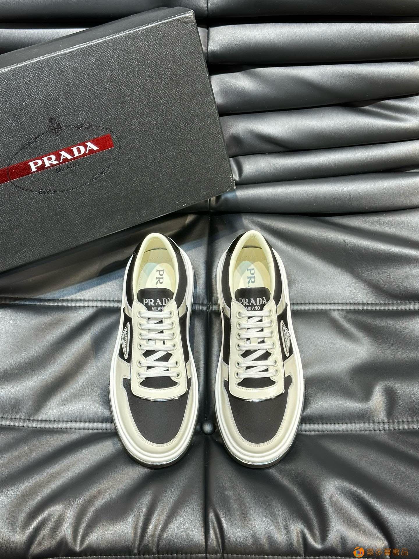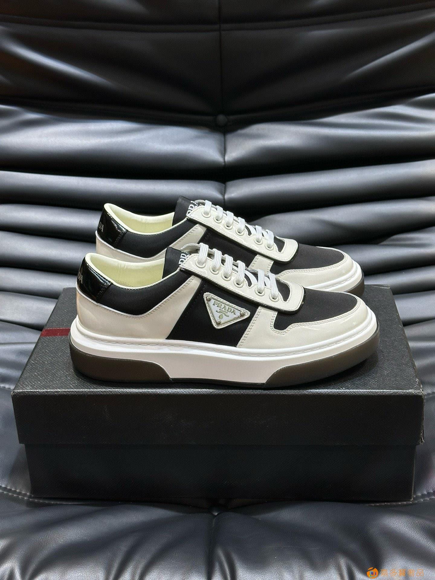 ?:{普拉达}男士皮革休闲运动鞋,莞产猛货!采用进口纯色小牛