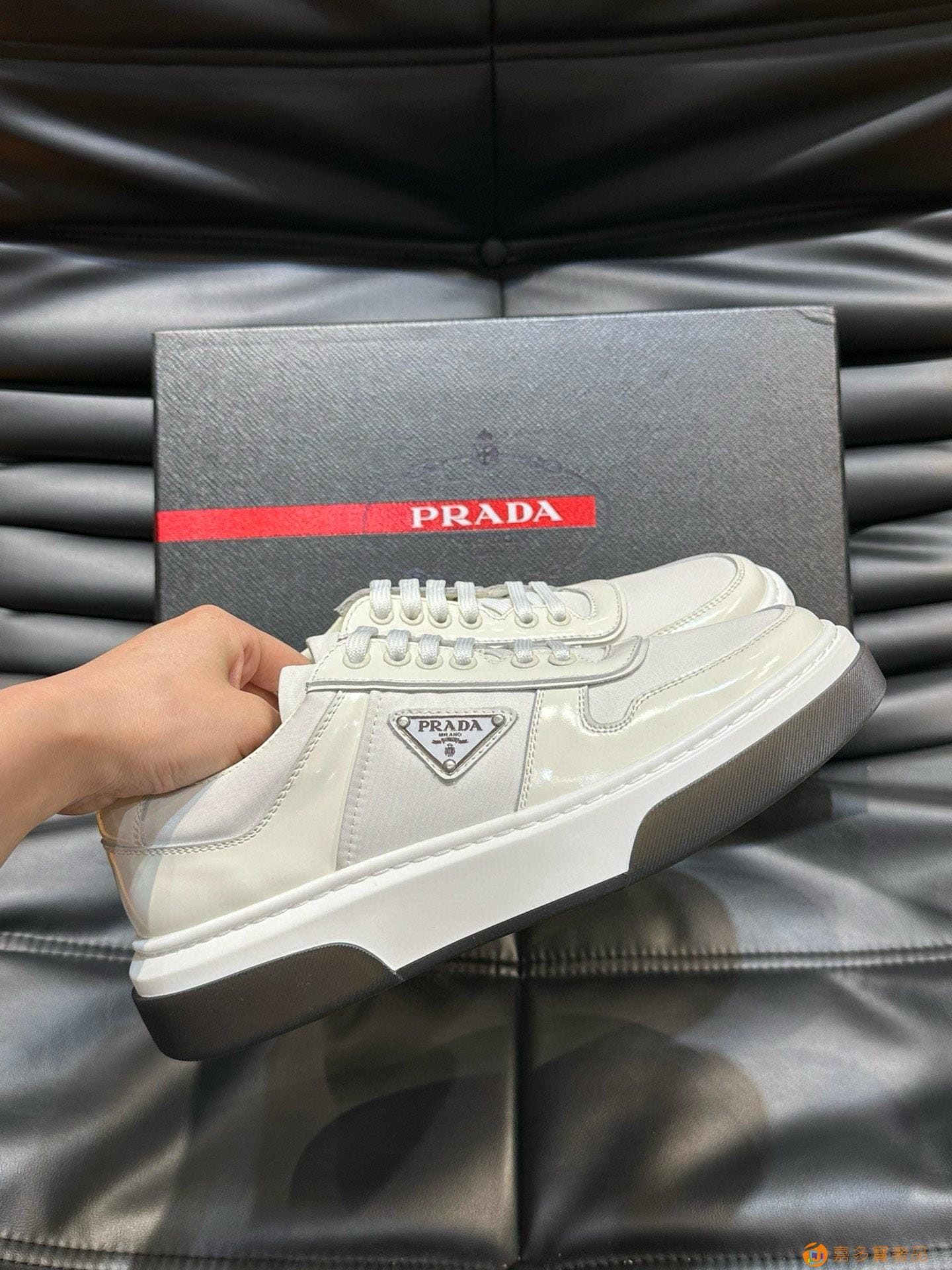 ?:{普拉达}男士皮革休闲运动鞋,莞产猛货!采用进口纯色小牛