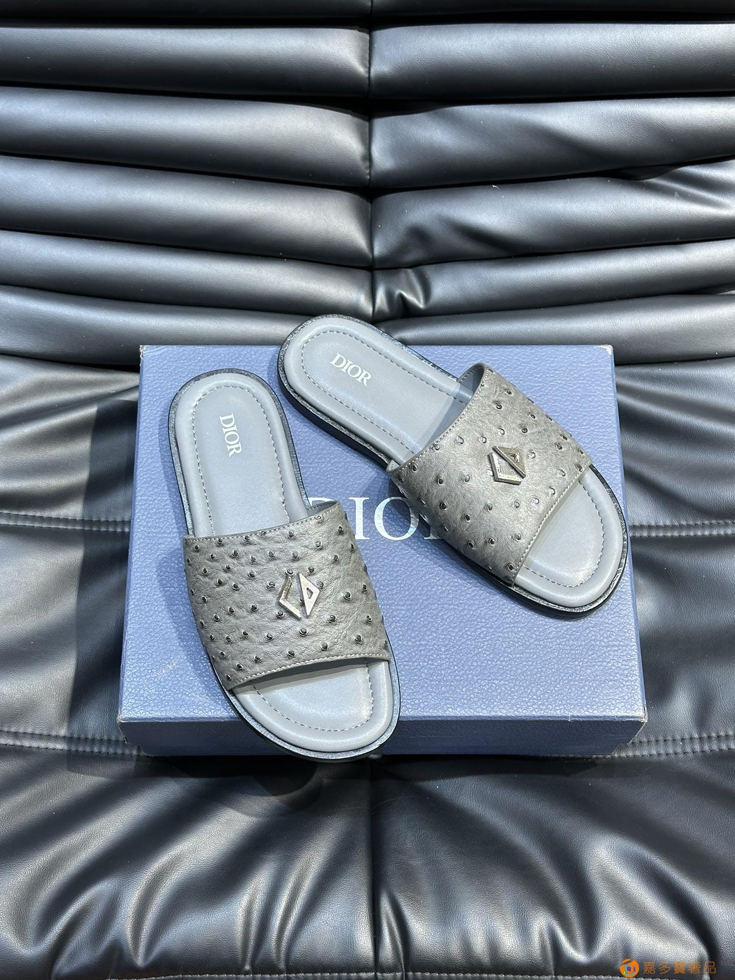 ???? Dior*~ 高端男士真皮大底夏季拖鞋,鞋面材质头