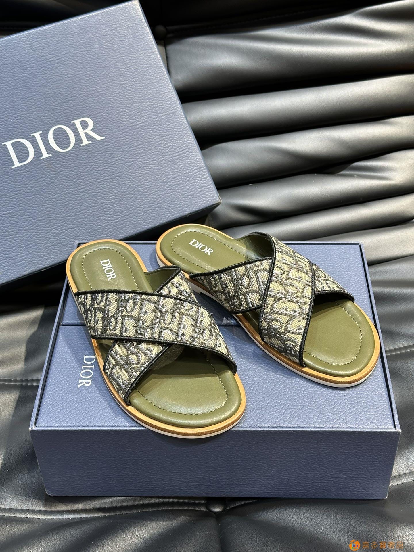 ???? Dior*~ 高端男士真皮大底夏季拖鞋,鞋面材质头