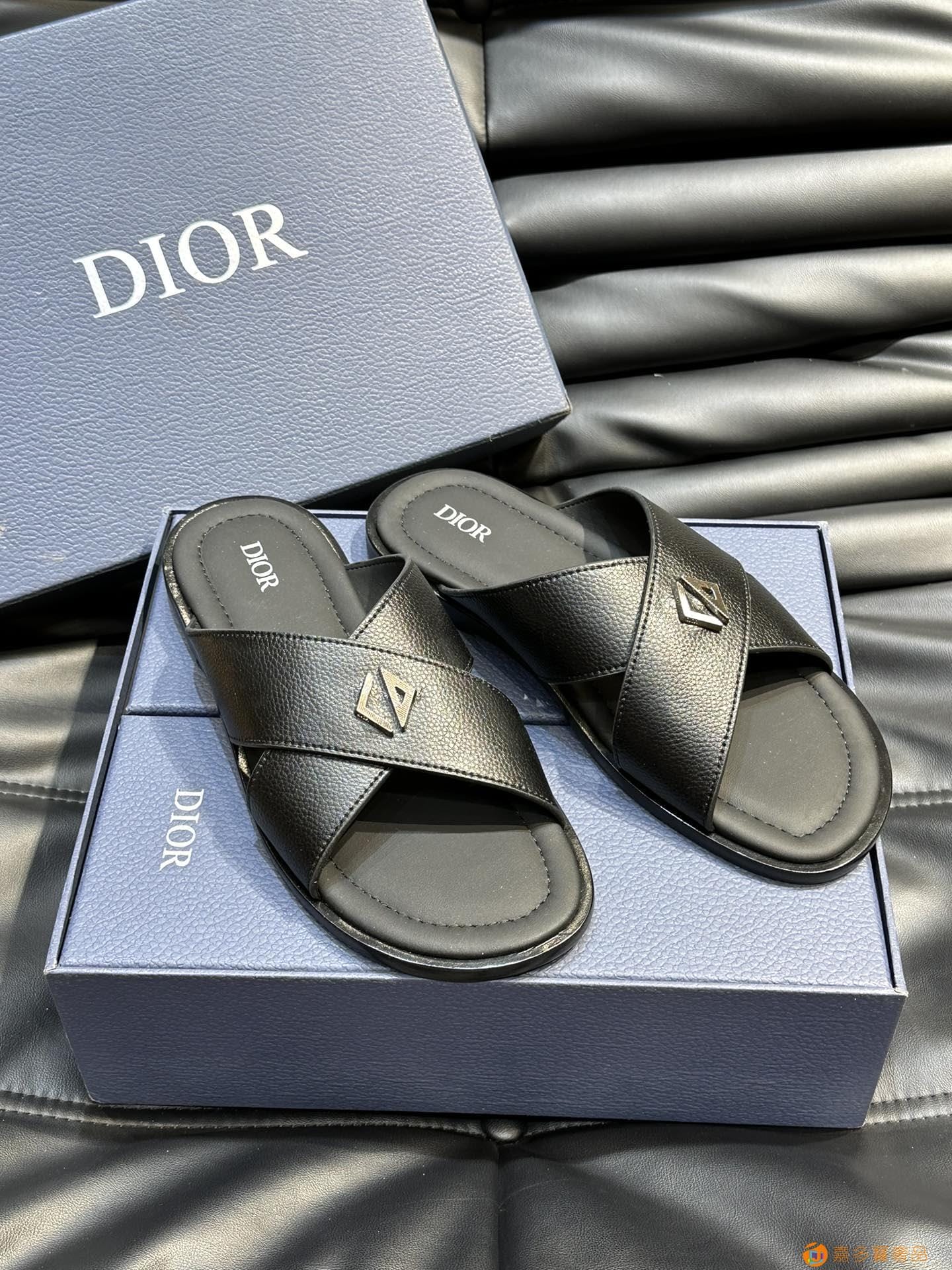 ???? Dior*~ 高端男士真皮大底夏季拖鞋,鞋面材质头