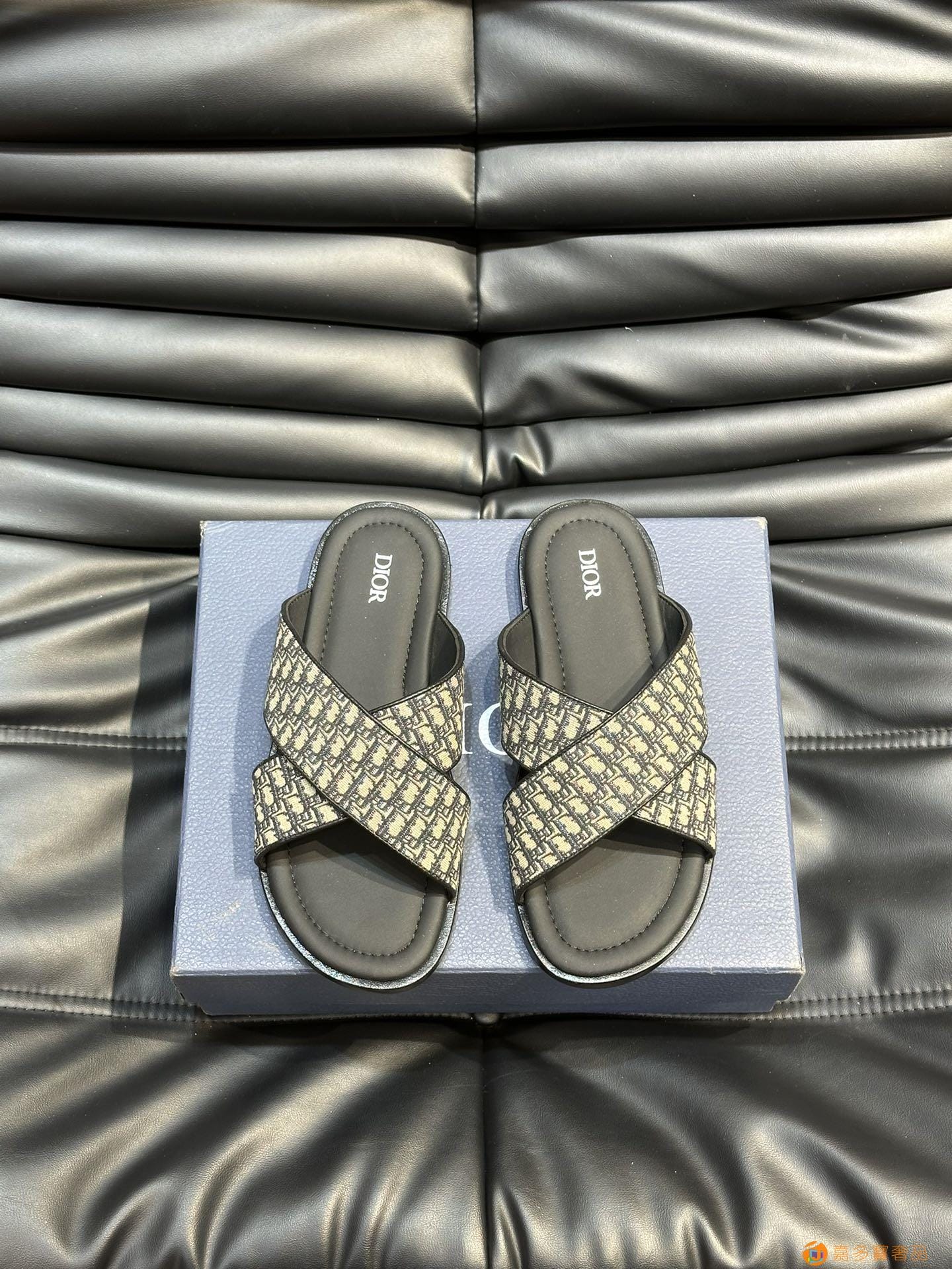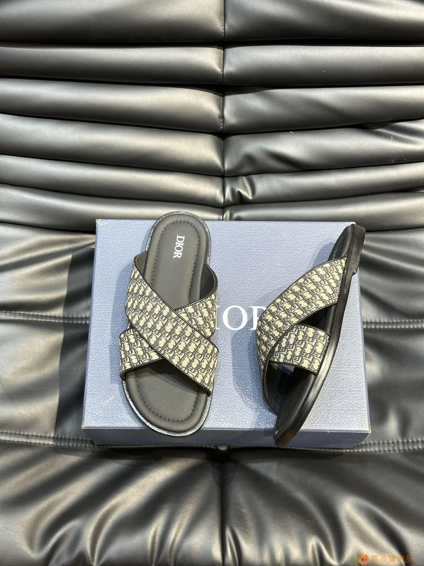???? Dior*~ 高端男士真皮大底夏季拖鞋,鞋面材质头