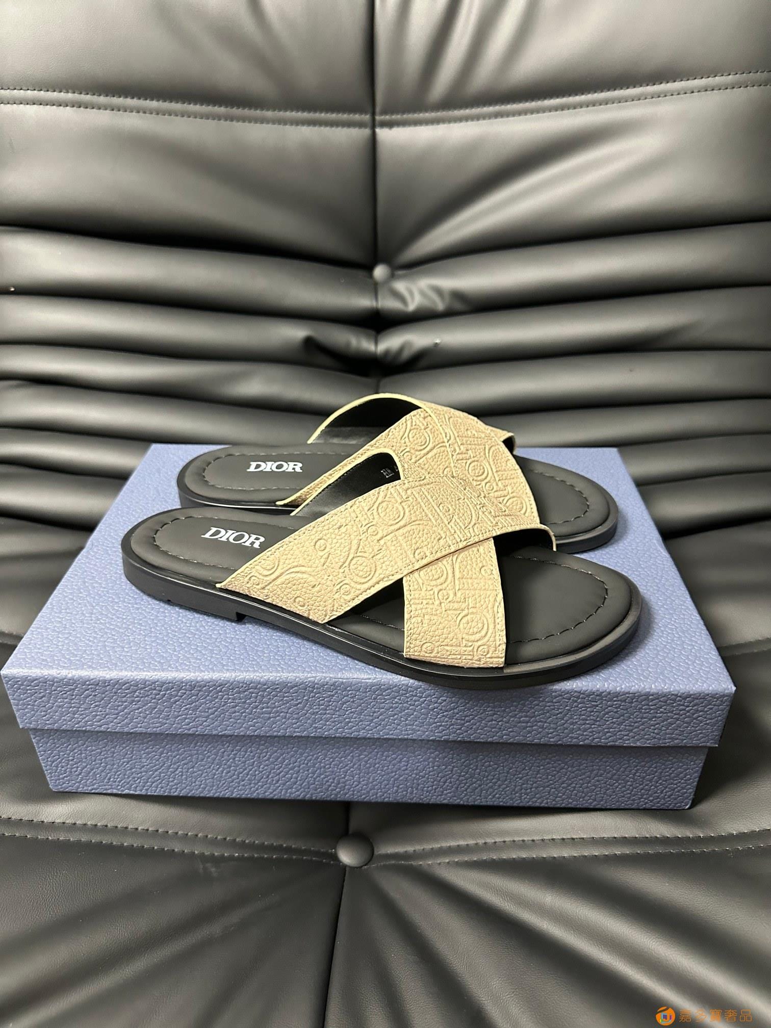 ???? Dior*~ 高端男士真皮大底夏季拖鞋,鞋面材质头