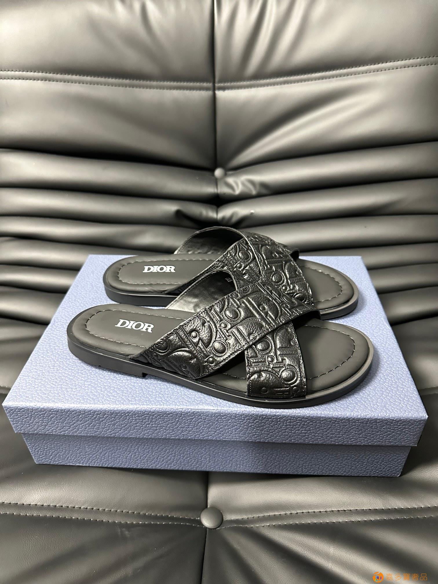 ???? Dior*~ 高端男士真皮大底夏季拖鞋,鞋面材质头