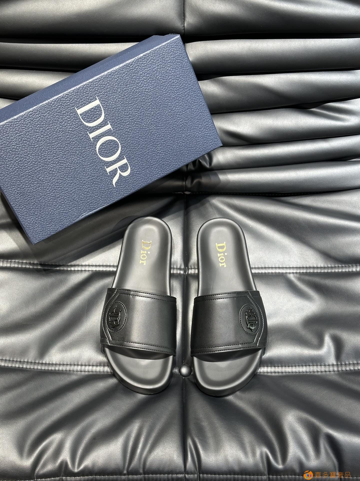 ???? Dior*~ 高端男士真皮大底夏季拖鞋,鞋面材质头