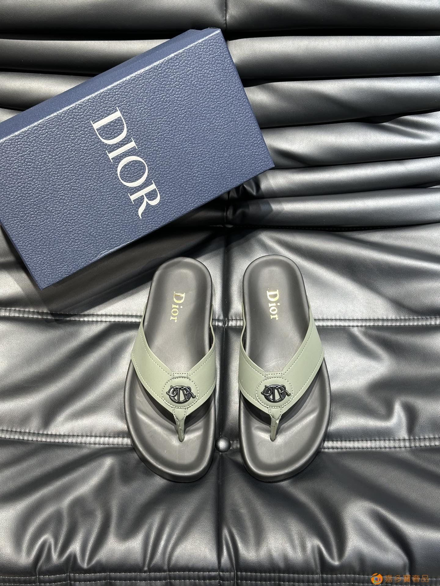???? Dior*~ 高端男士真皮大底夏季拖鞋,鞋面材质头