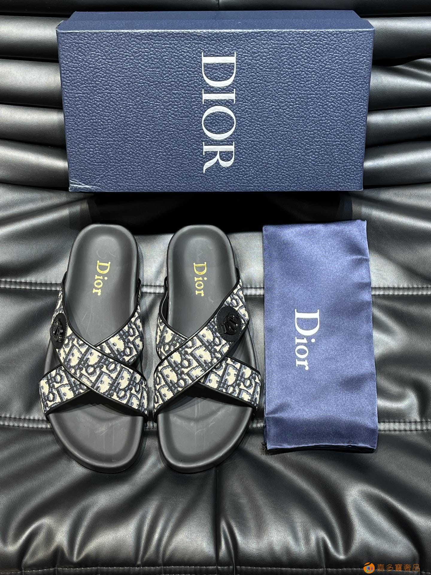 Dior*~家经典男士拖鞋,高端精品,原版材质,鞋面纯棉印花