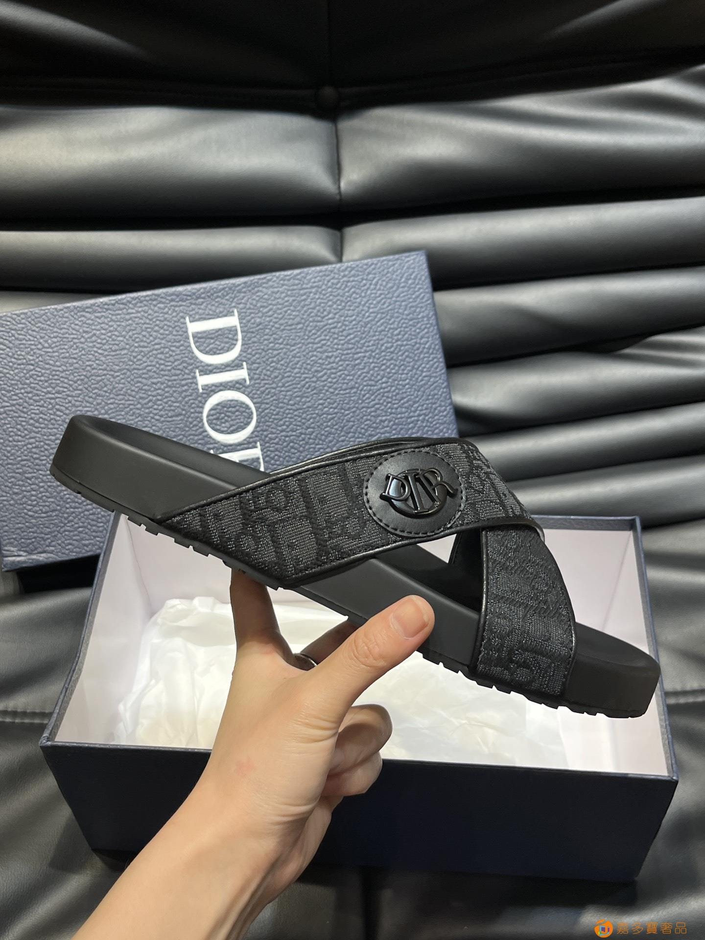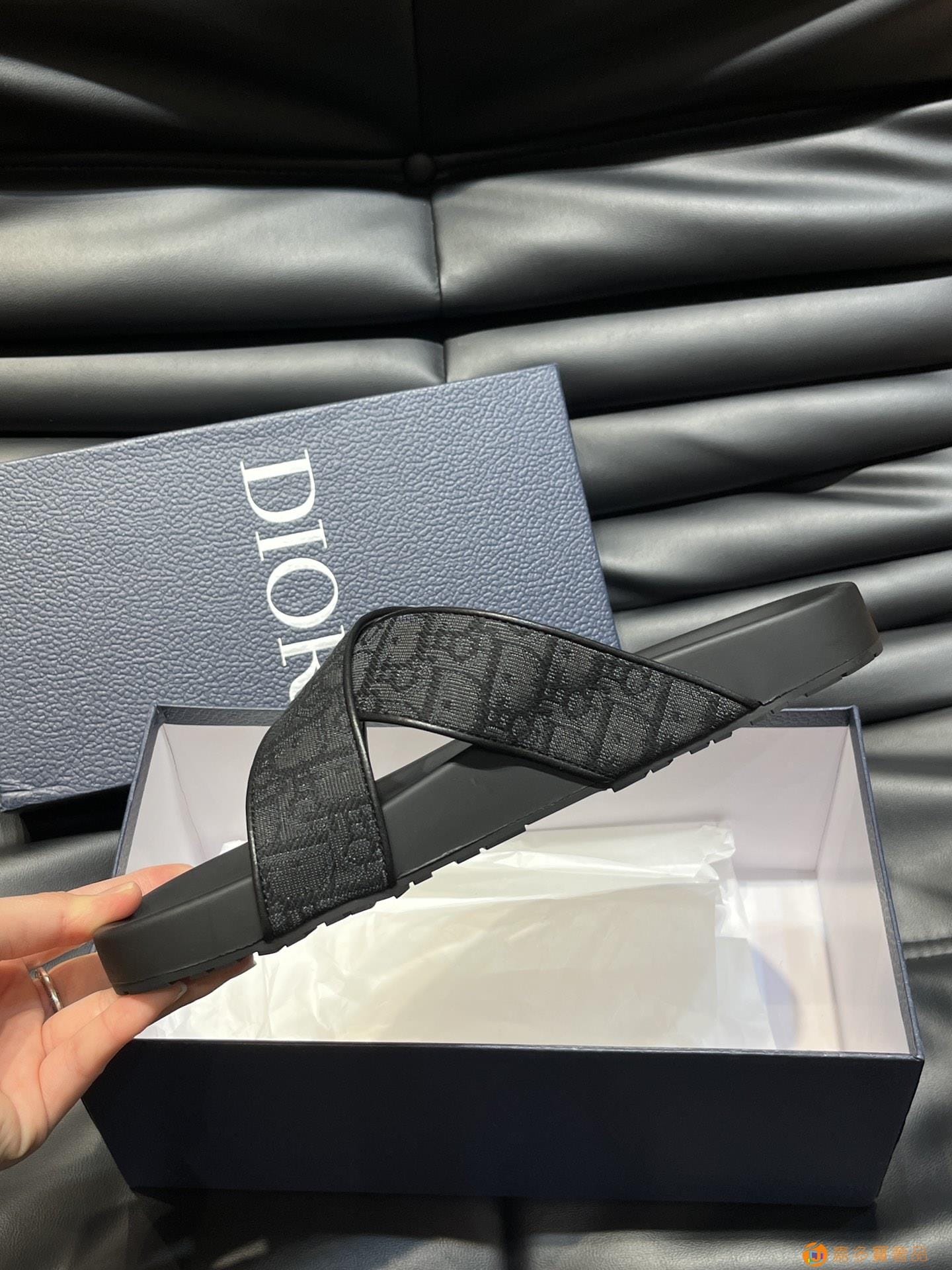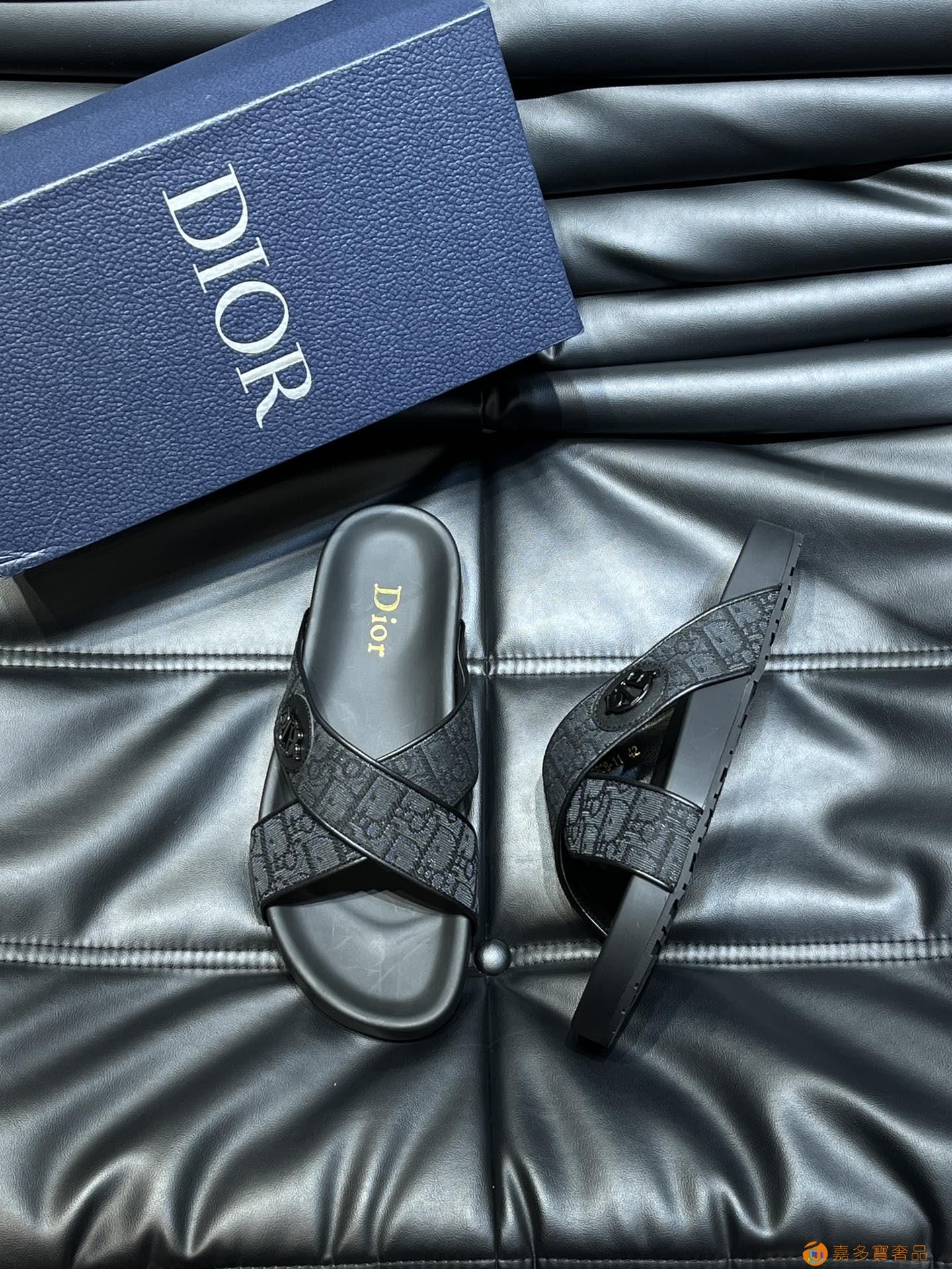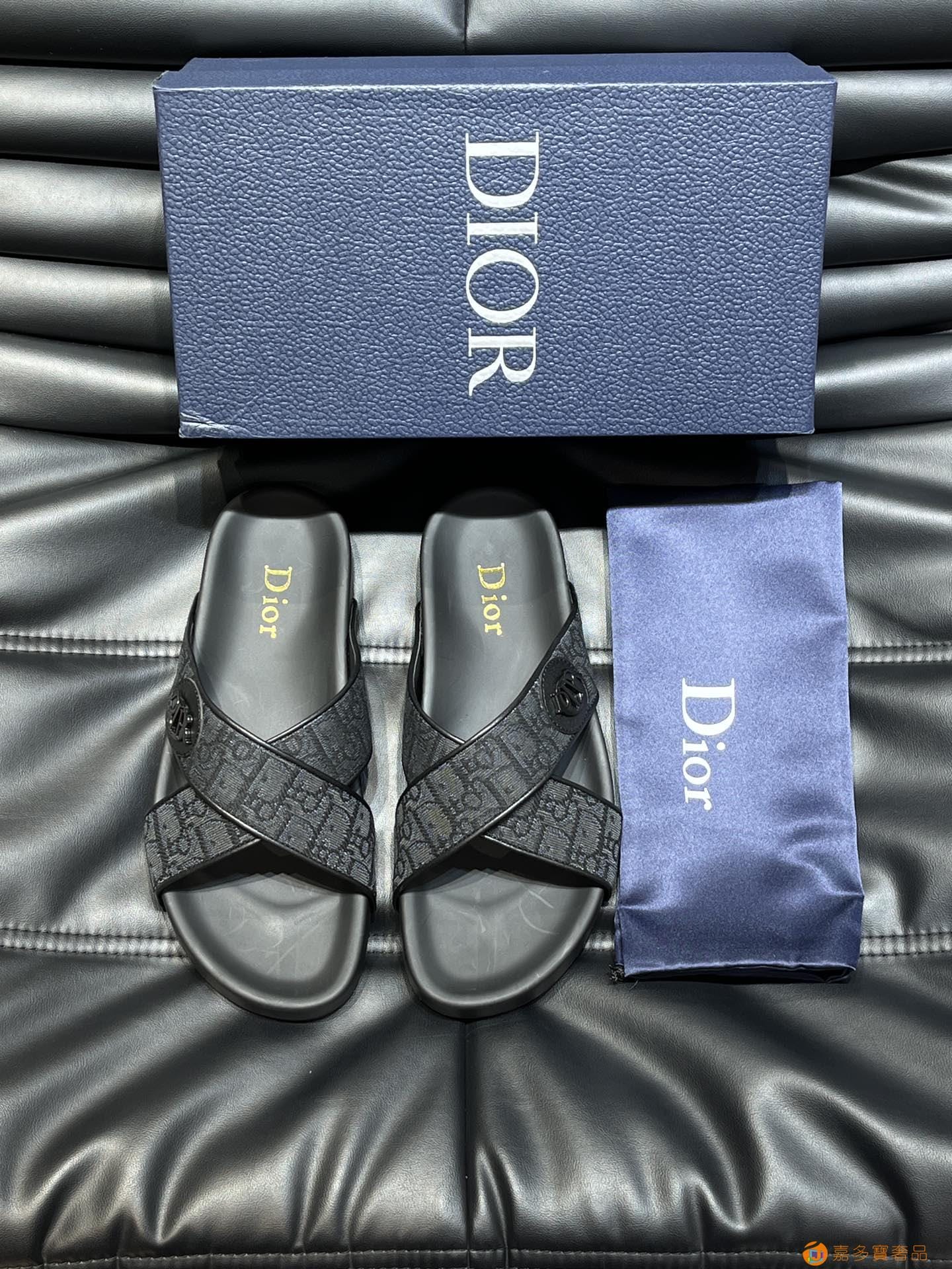 Dior*~家经典男士拖鞋,高端精品,原版材质,鞋面纯棉印花