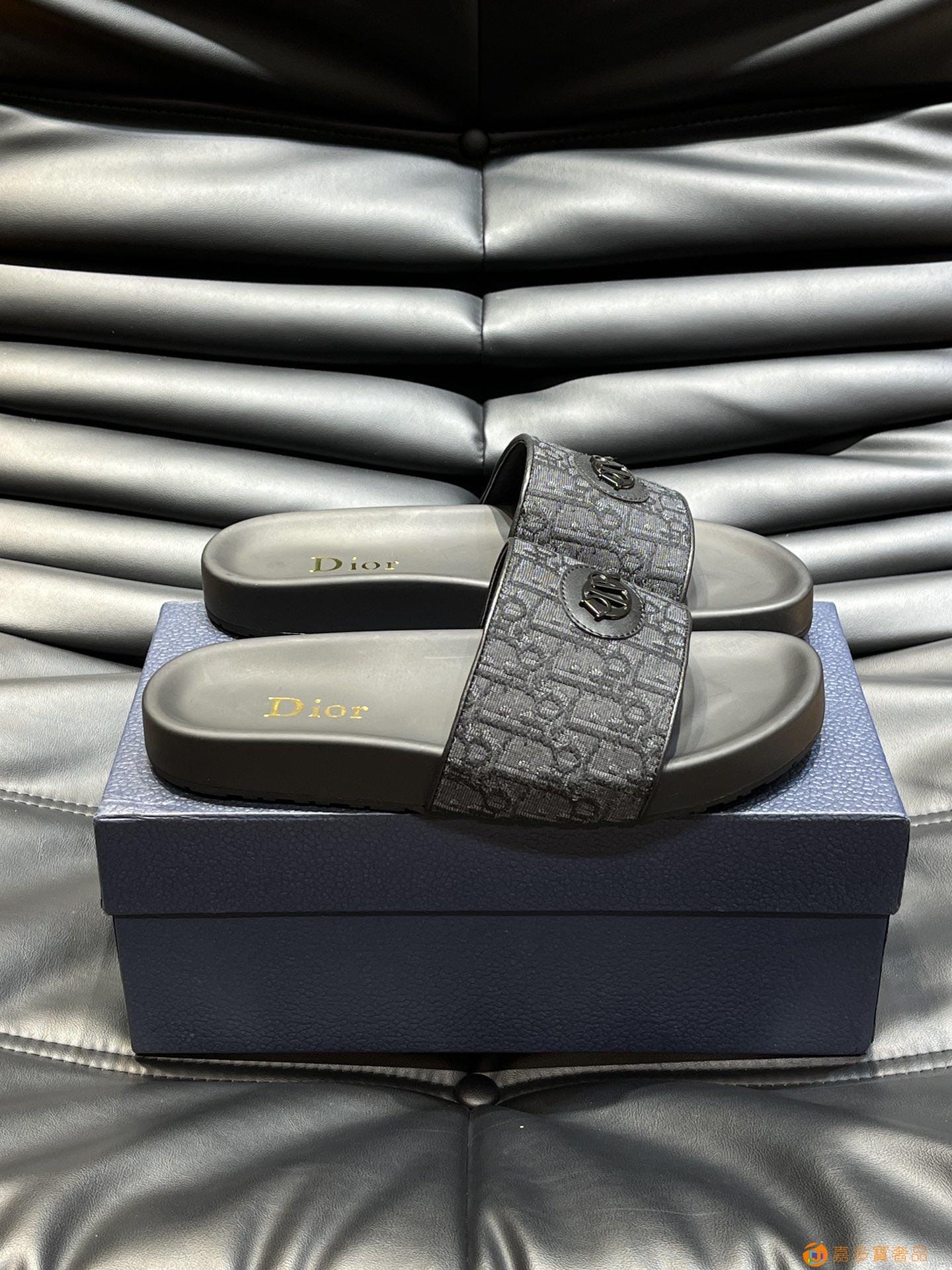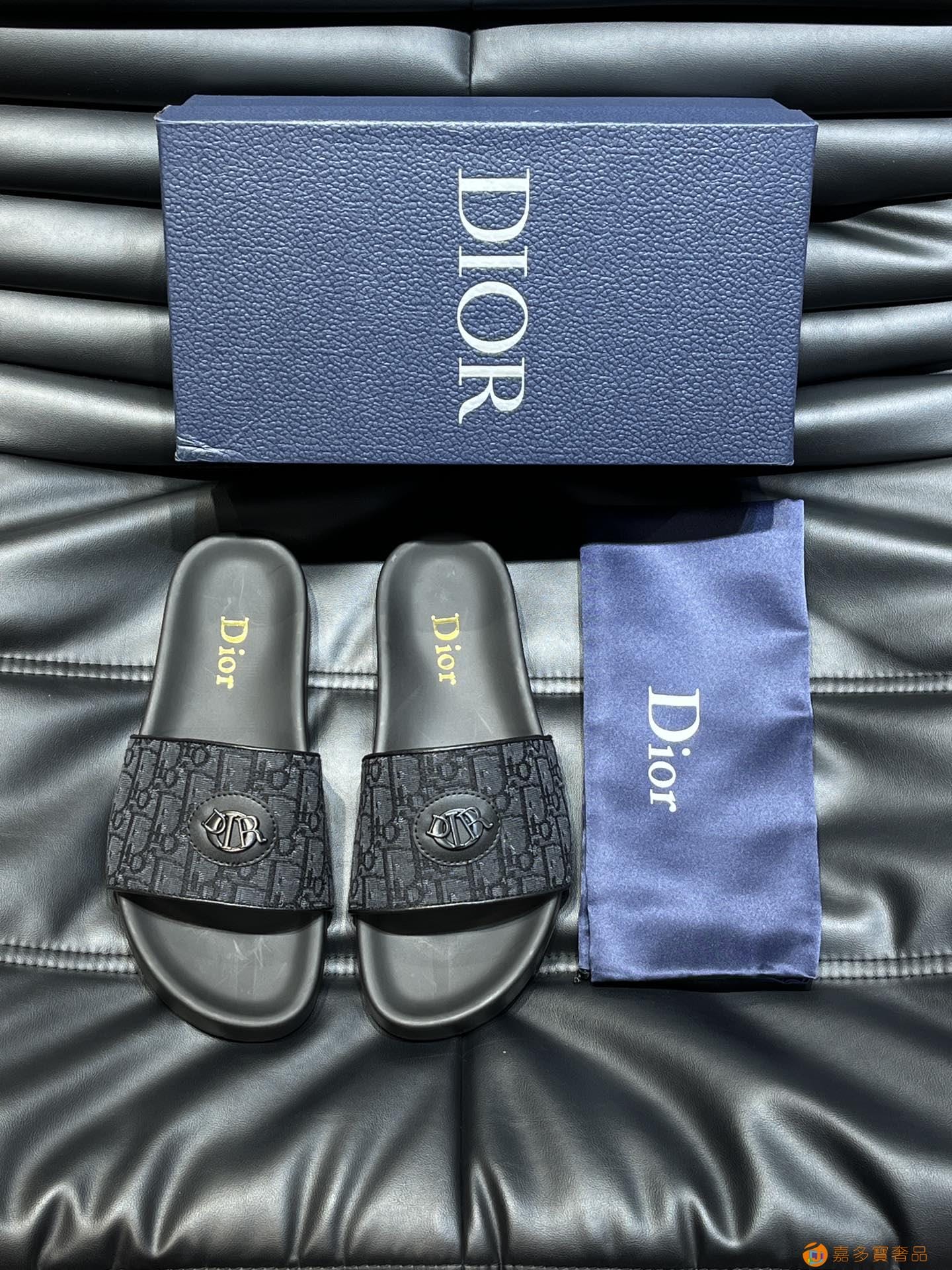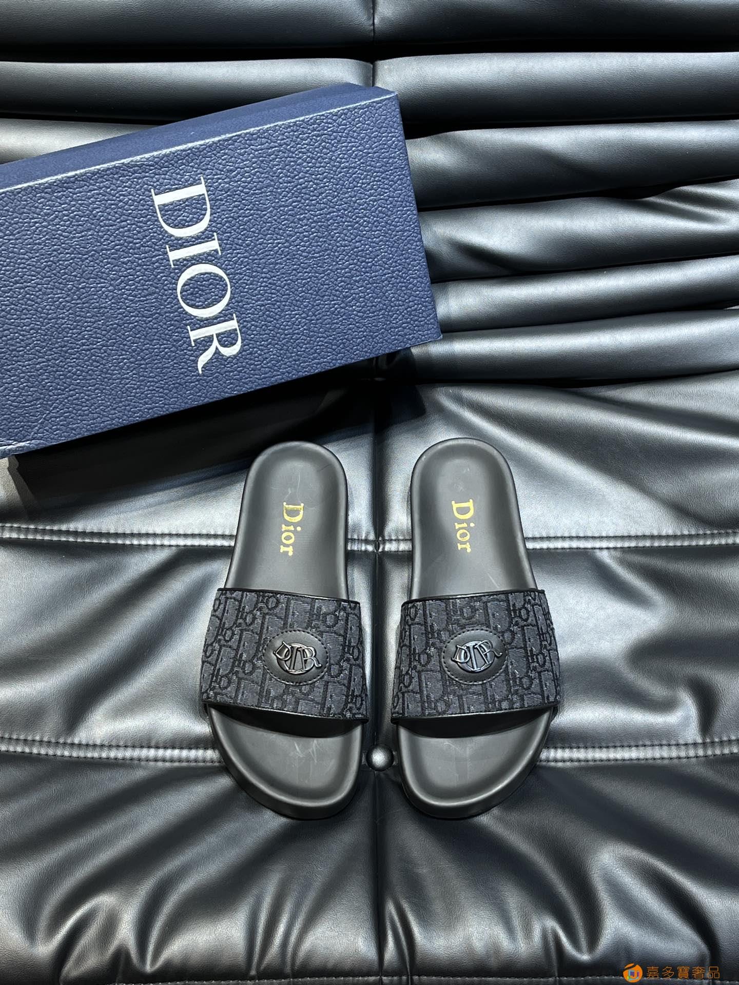 Dior*~家经典男士拖鞋,高端精品,原版材质,鞋面纯棉印花
