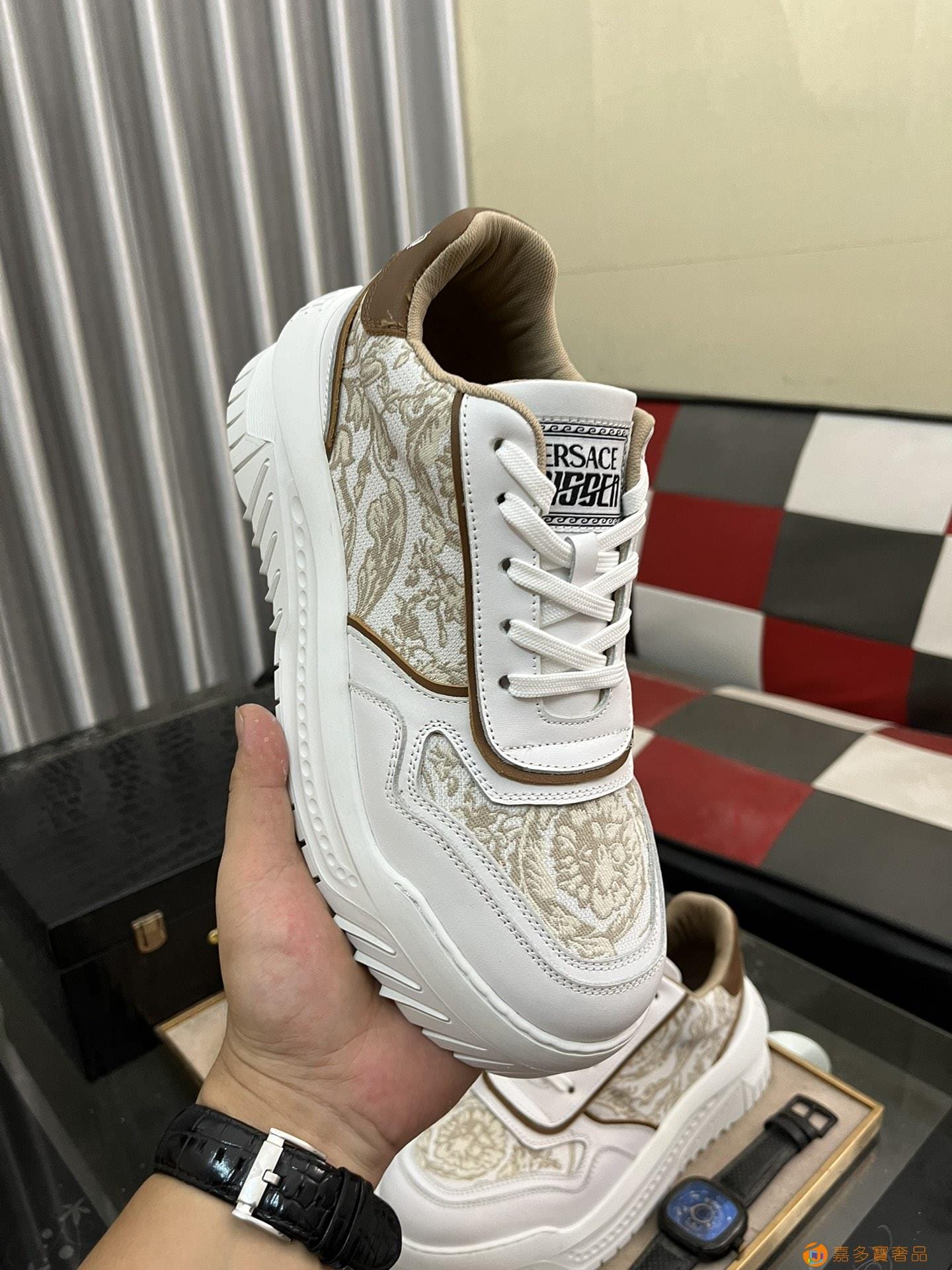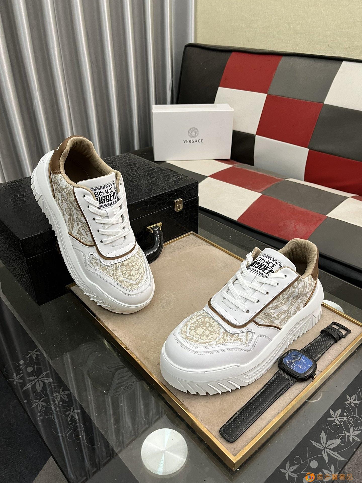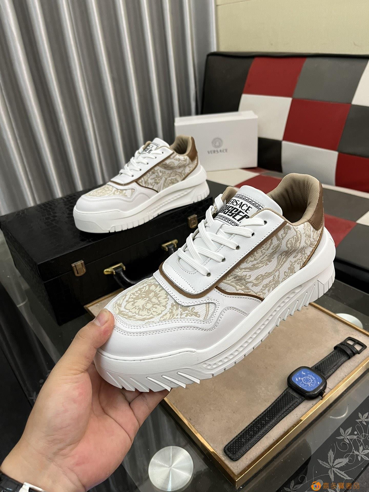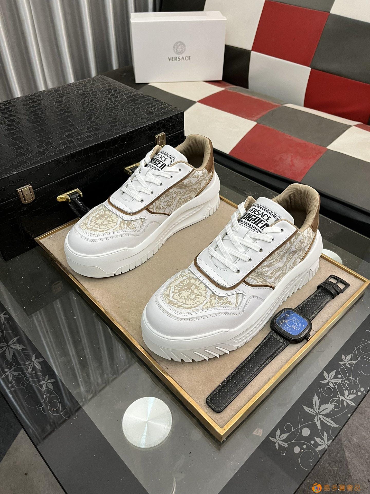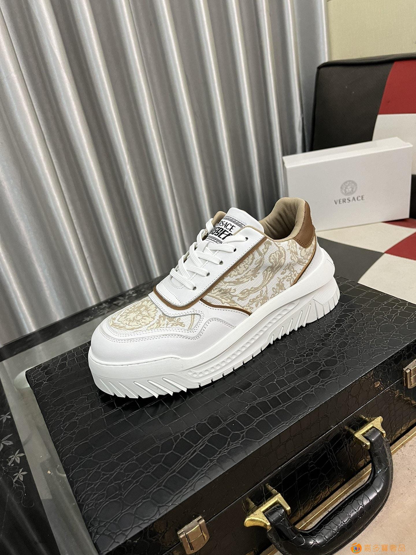 :????《 范思哲VERSACE* 》 最新?爆款休闲鞋,顶端品牌[勾引]奢侈~代购,顶级~质量。[强]鞋面選用进口透气牛皮搭配材质?透气羊皮垫脚(?)精细做工。原版个性时尚柔软橡膠耐磨大底,上脚轻巧舒适,码数: -??色可选