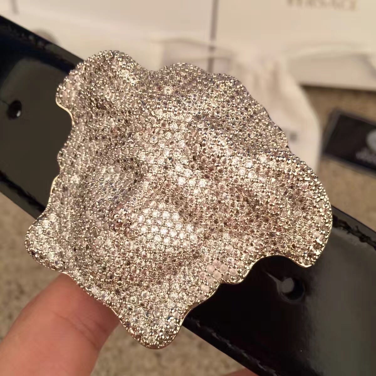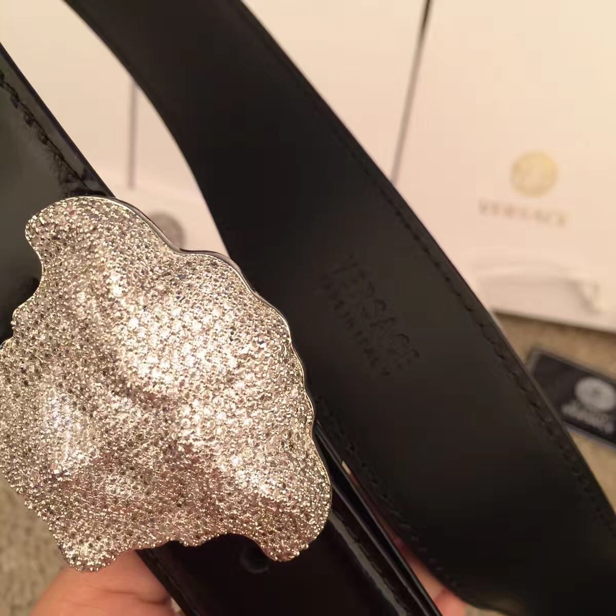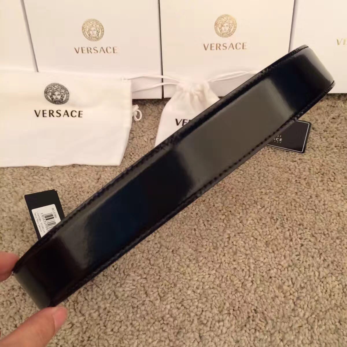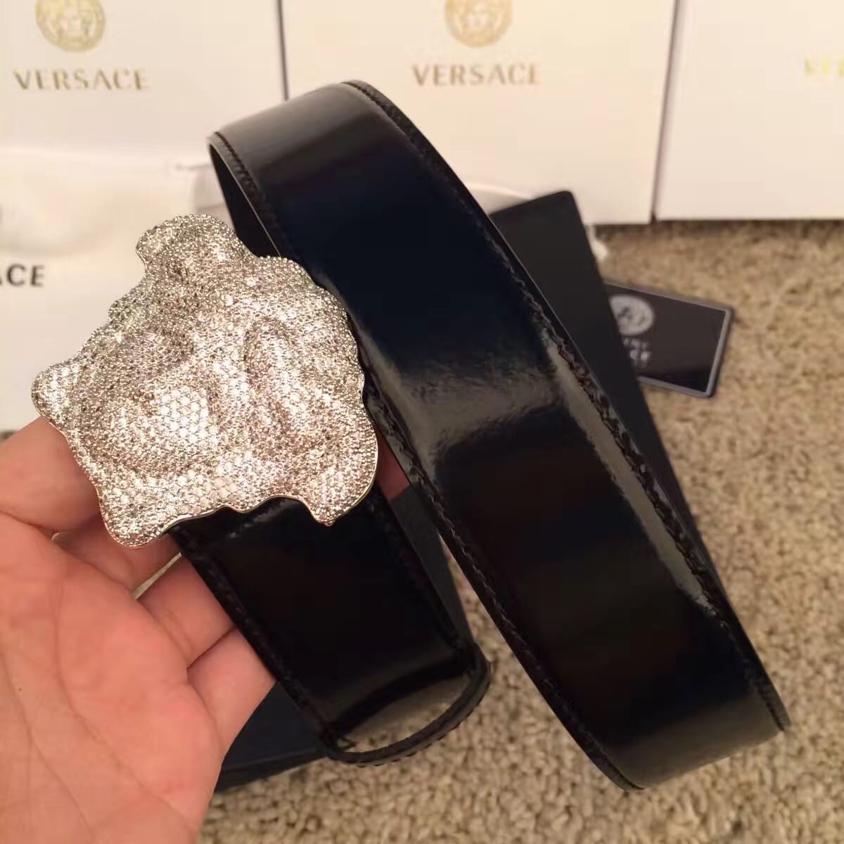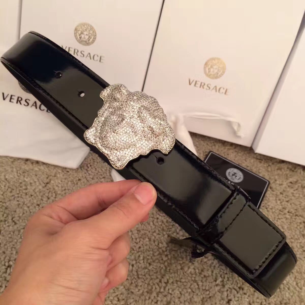 范思哲 VERSACE睡美人满天星系列 亮漆皮男士腰带