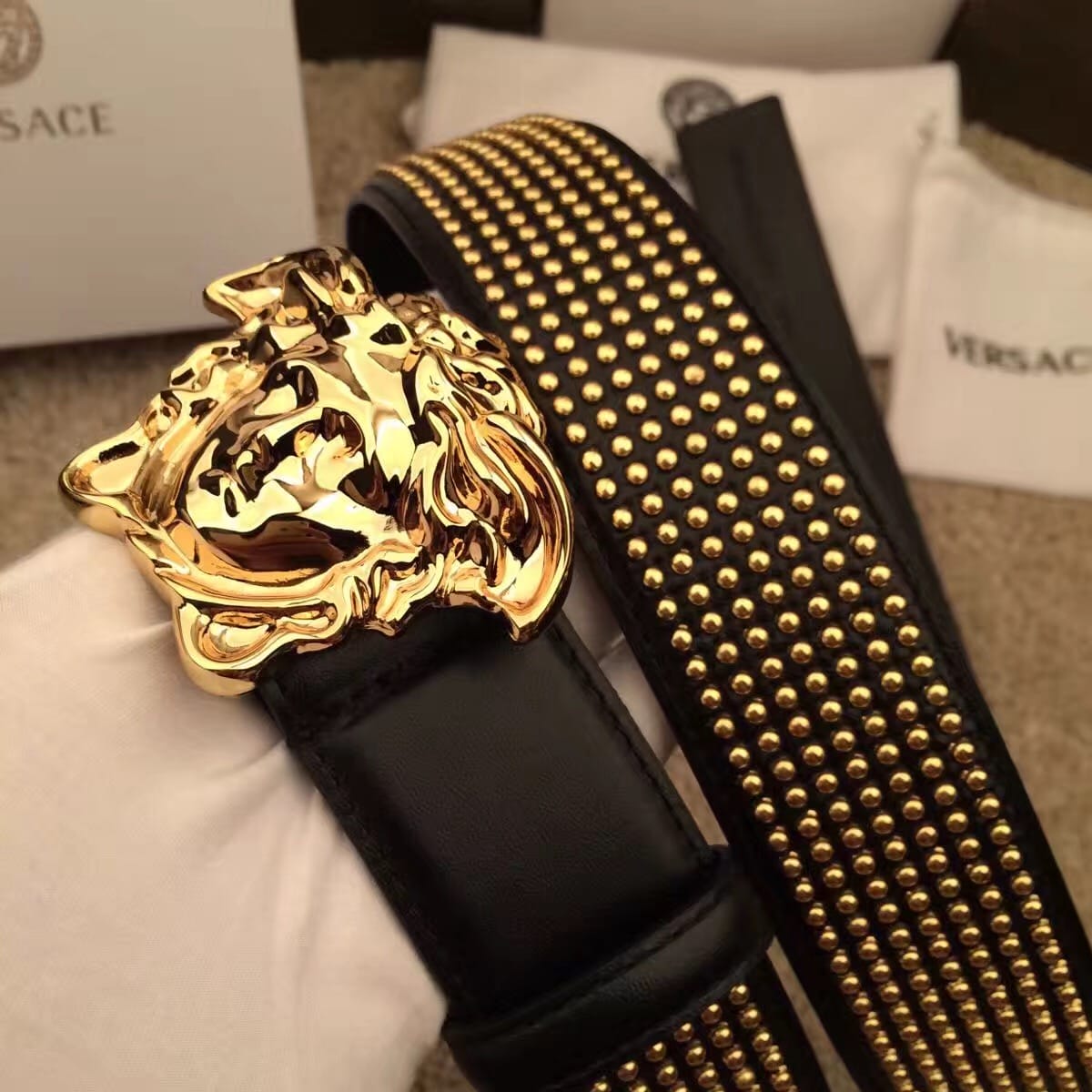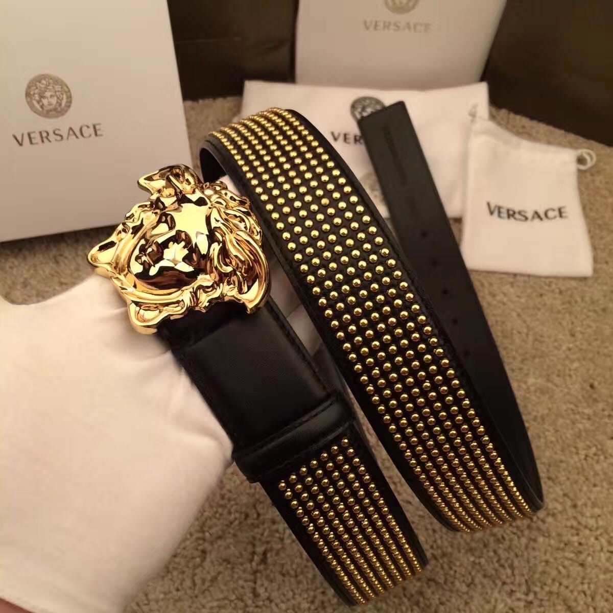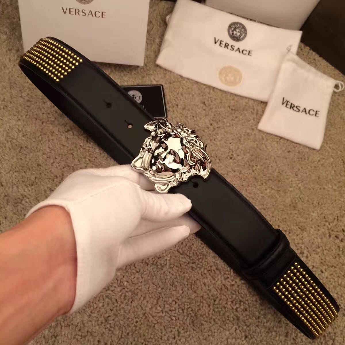 范思哲 VERSACE 铆钉睡美人系列腰带 个性潮流必备单品