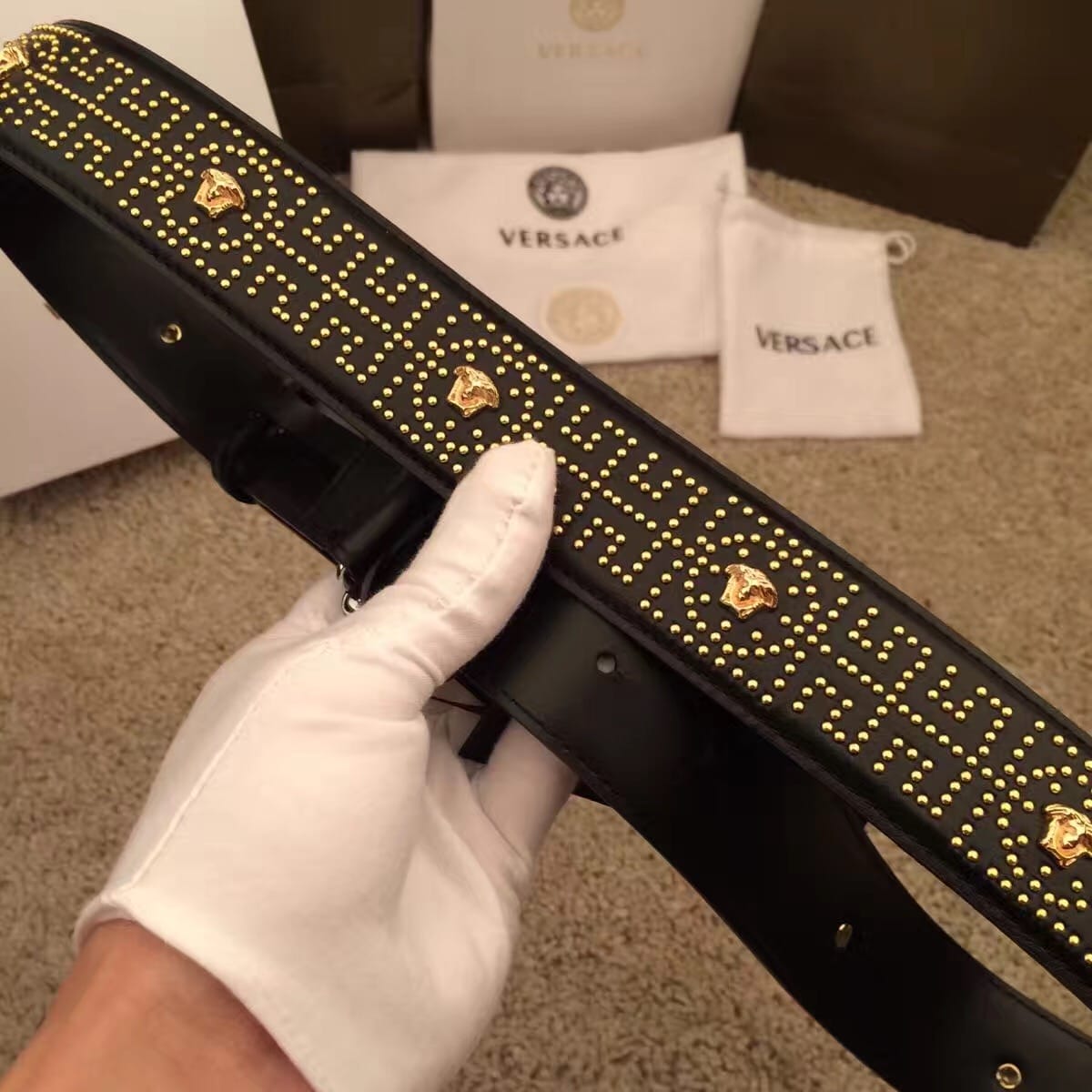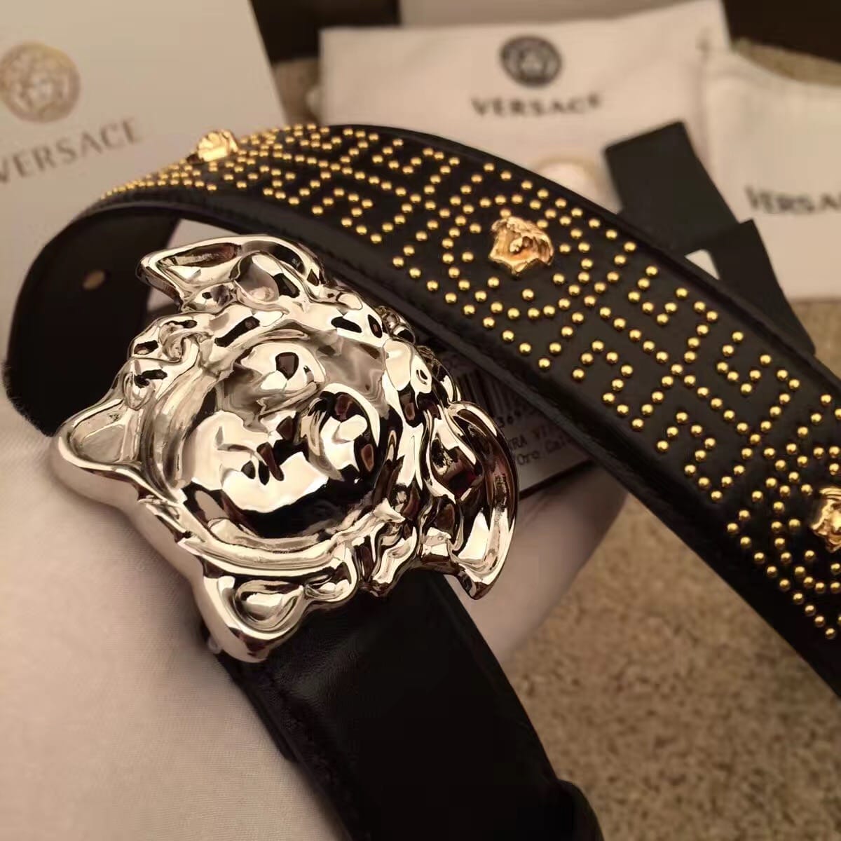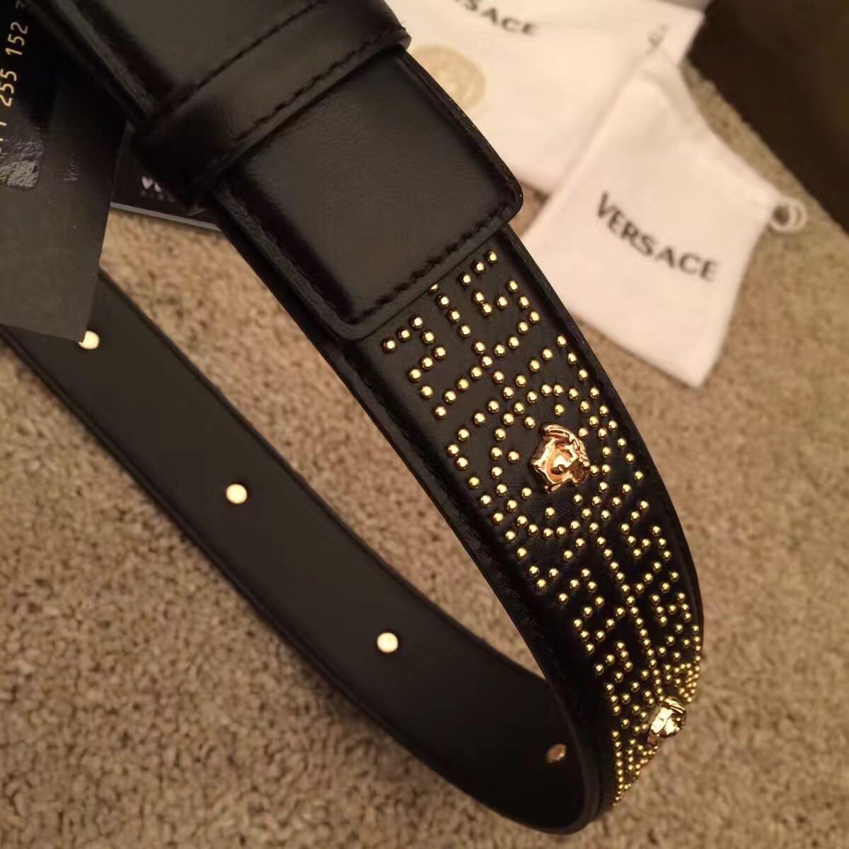 范思哲 VERSACE睡美人铆钉系列 黑色男士腰带