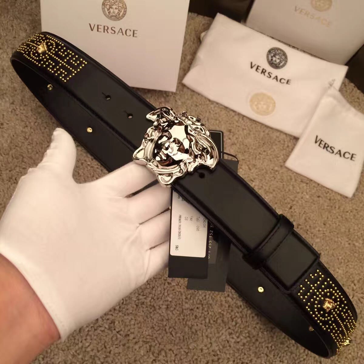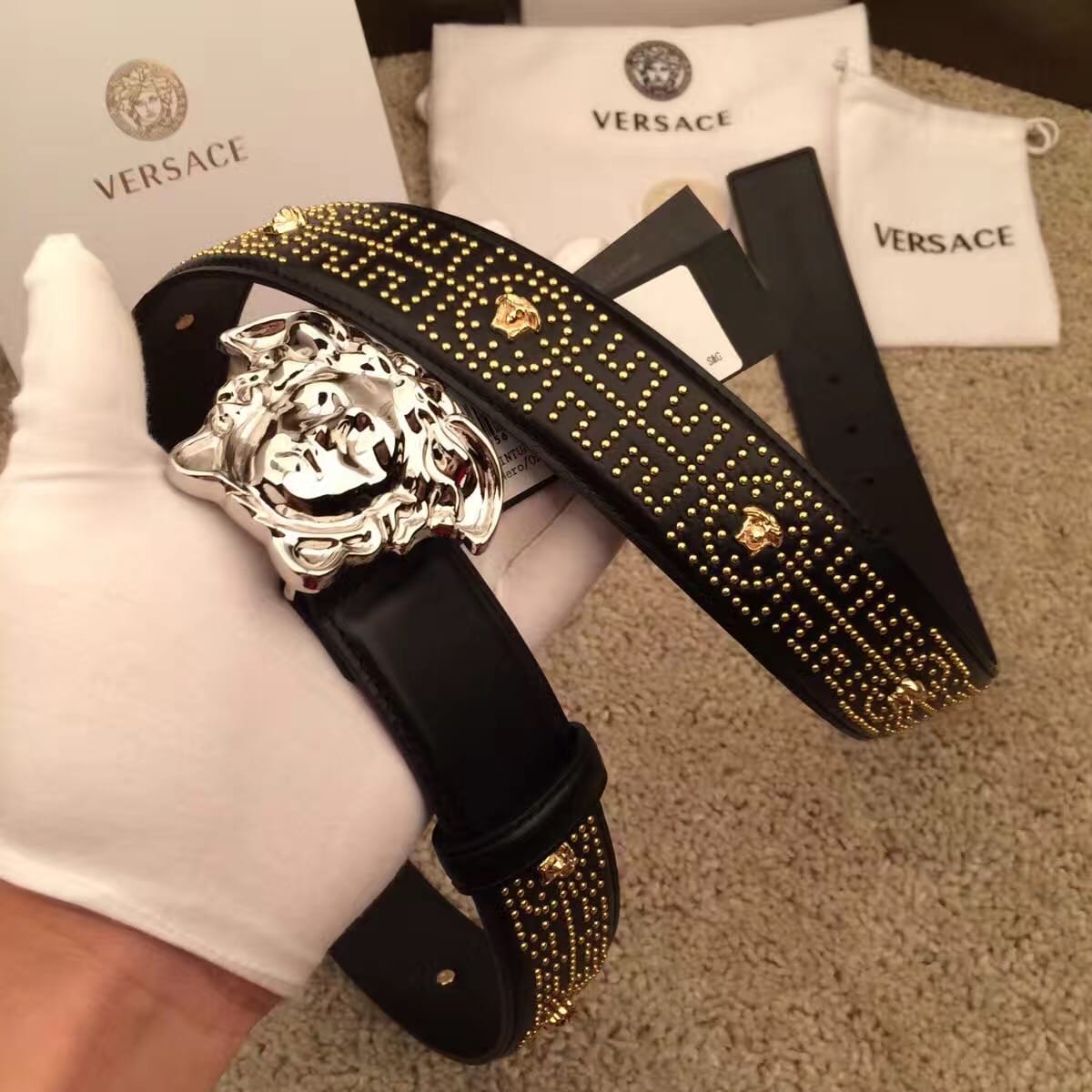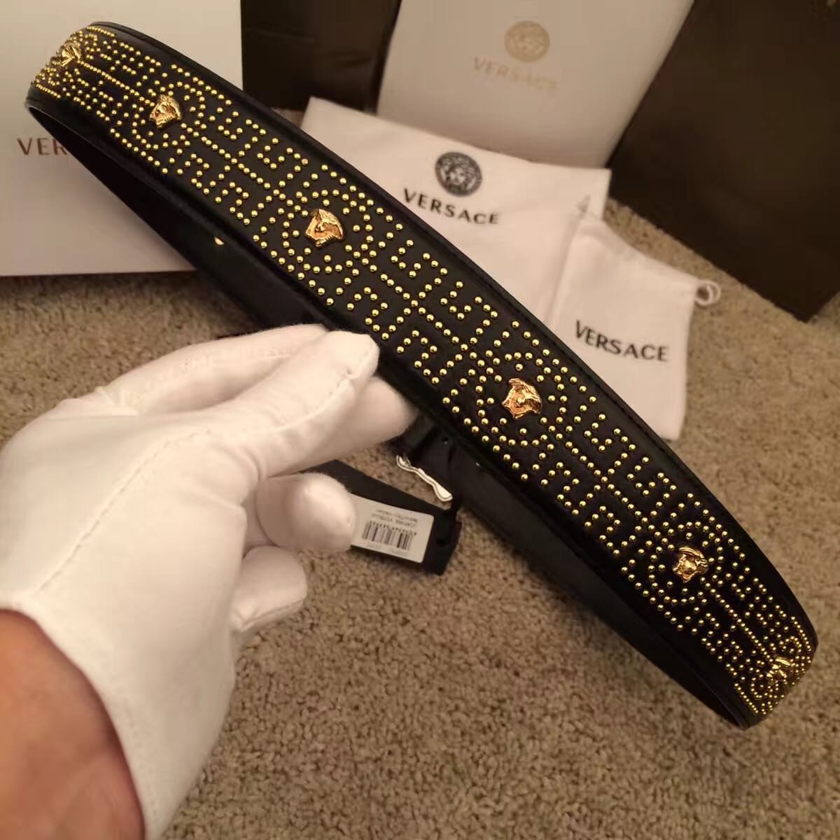 范思哲 VERSACE睡美人铆钉系列 黑色男士腰带